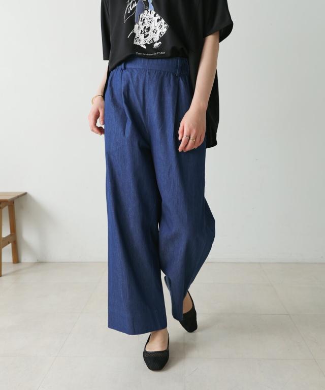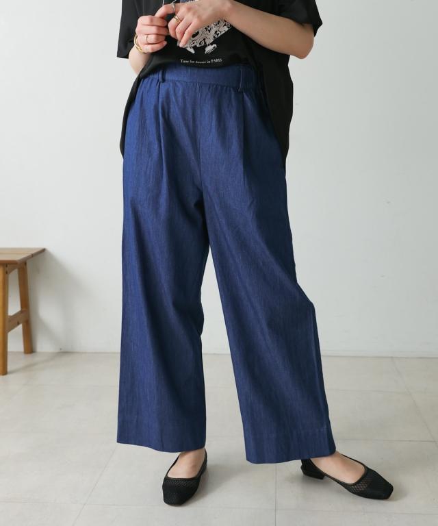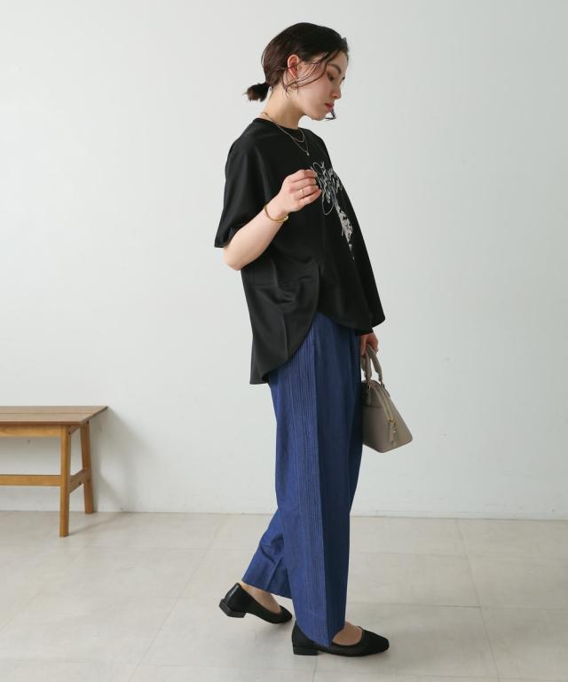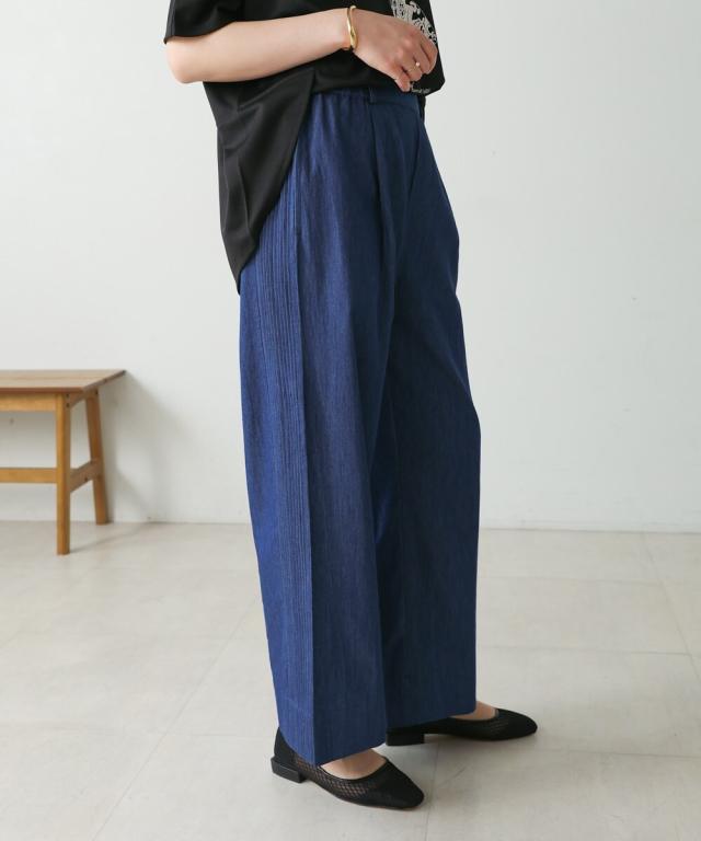 サイドの細かいプリーツが特徴のワイドパンツは綿100%で今からの暑い季節にピッタリの1枚です!!さらさらとした肌触りの良い生地を使用し、シルエットだけでなく履き心地にもこだわりました。総ゴムのウエストにはベルトホールも付いており、インもアウトも両方OKです。ゆったりしたしたサイズ感なのでどの体型の方にも安心してお使いいただけます。
