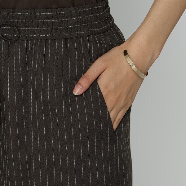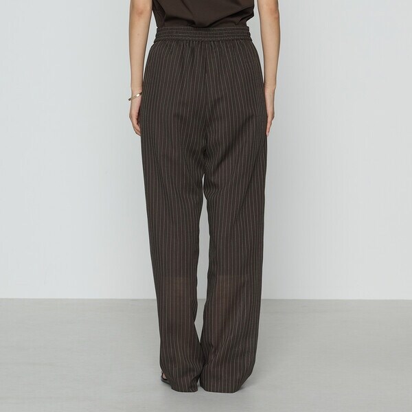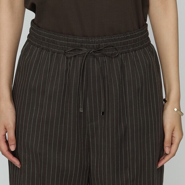 ストライプのシャープな柄とリラックス感のあるウエストゴム&ドロストの着用感が程良い、夏に向けてぴったりのイージーパンツです。
