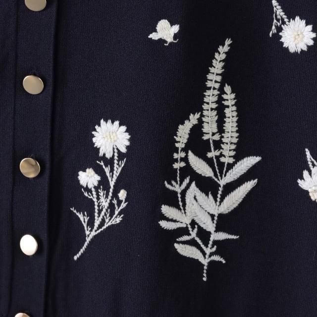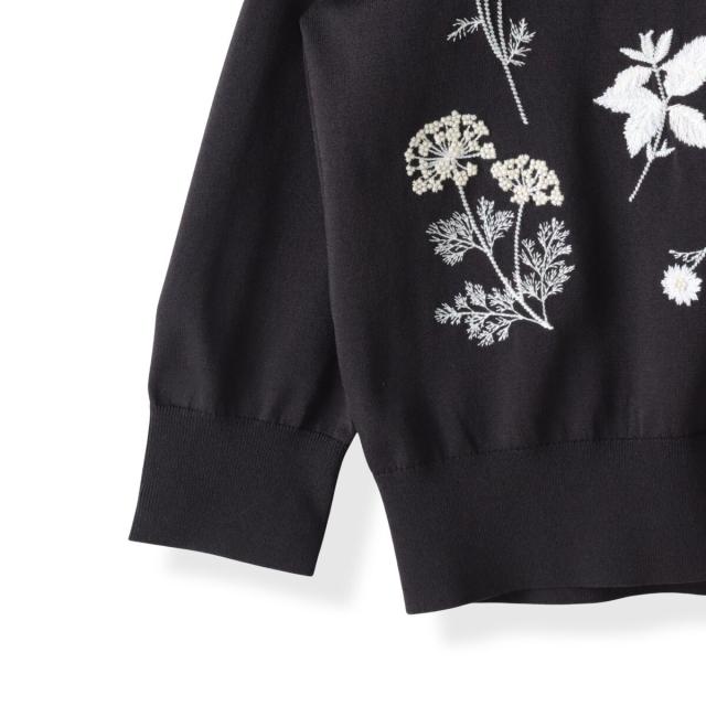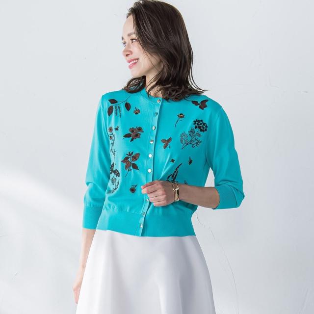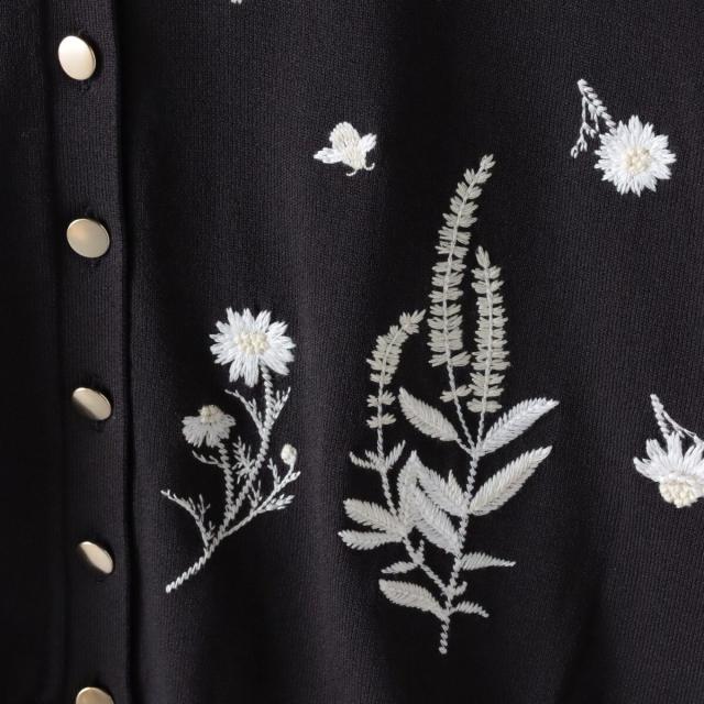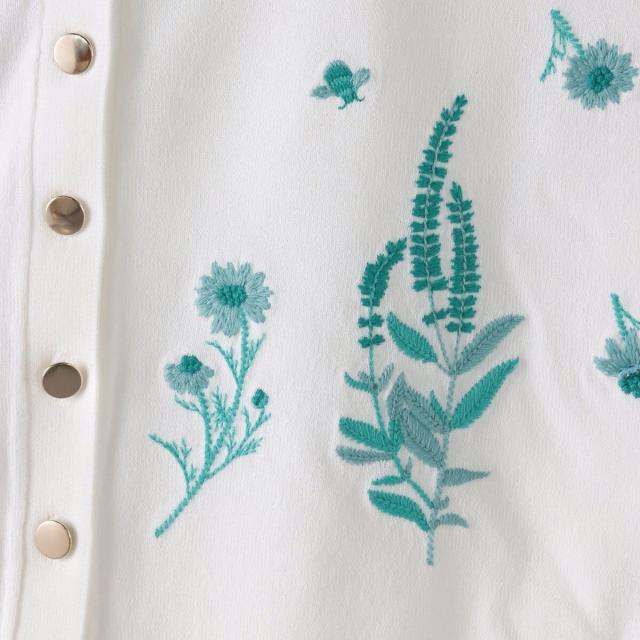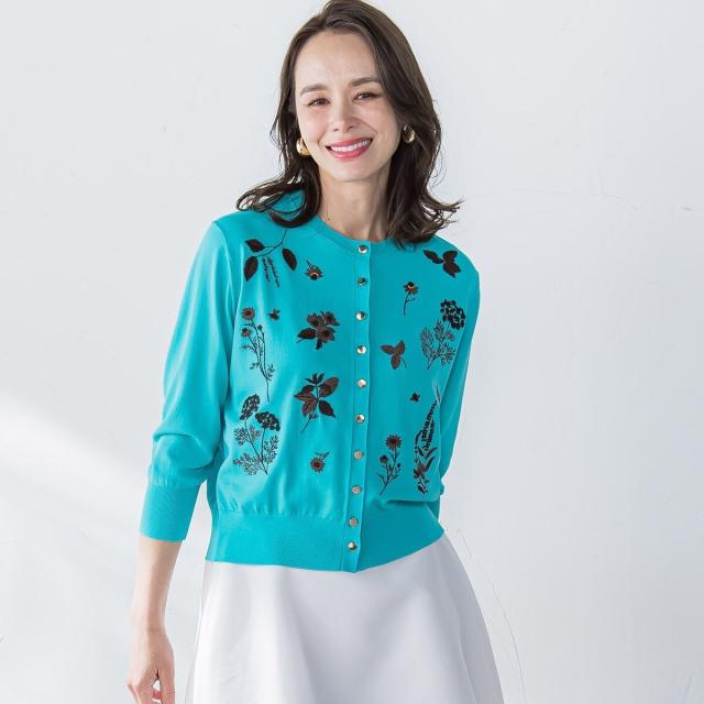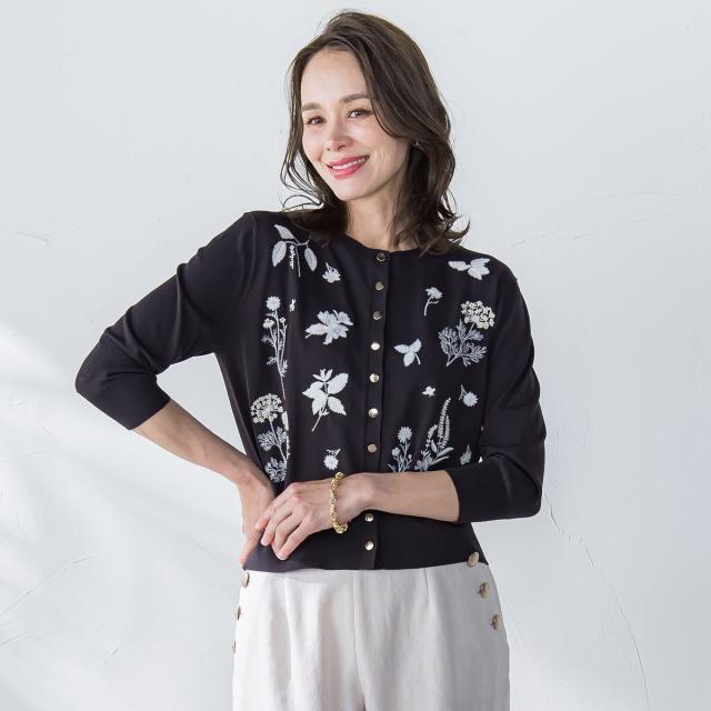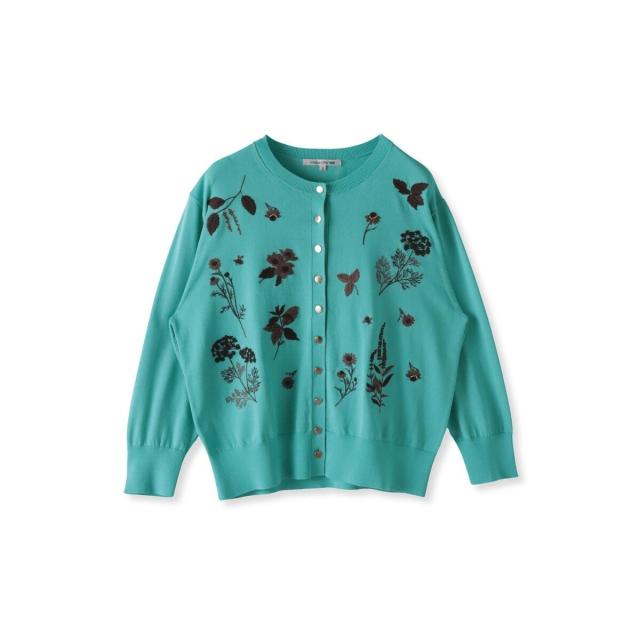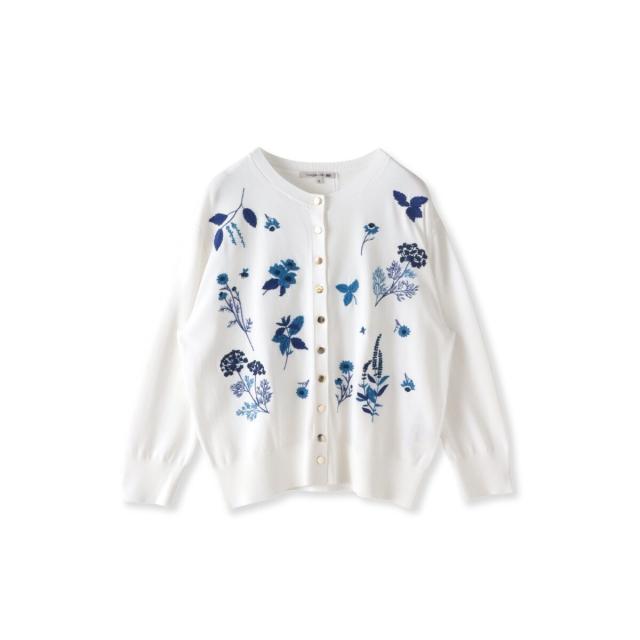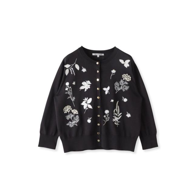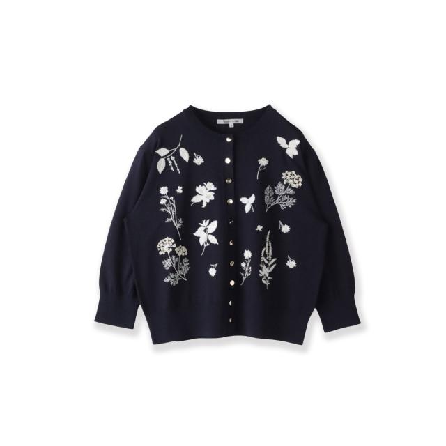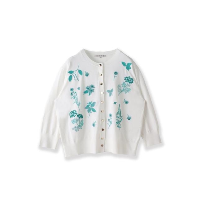 ハーブをテーマにしたボタニカルモチーフの刺繍がポイントのクルーネックカーディガン。