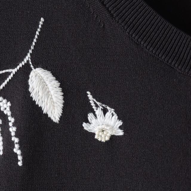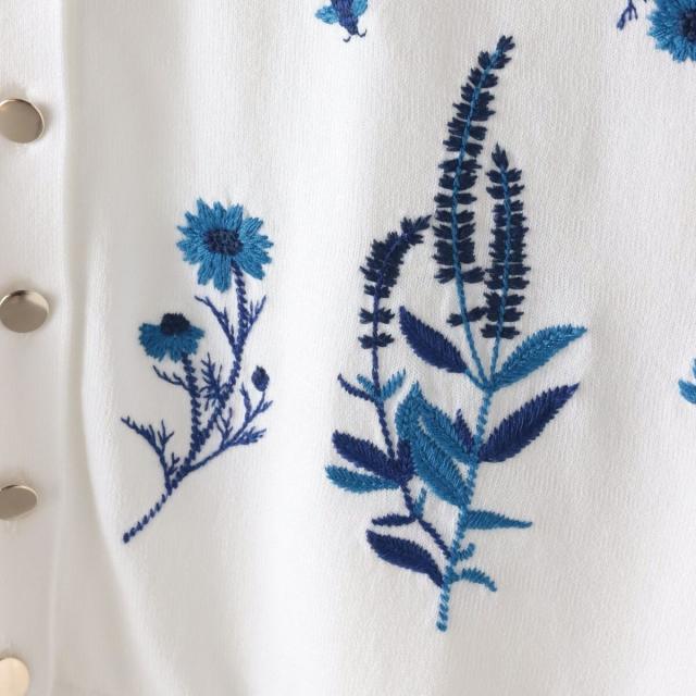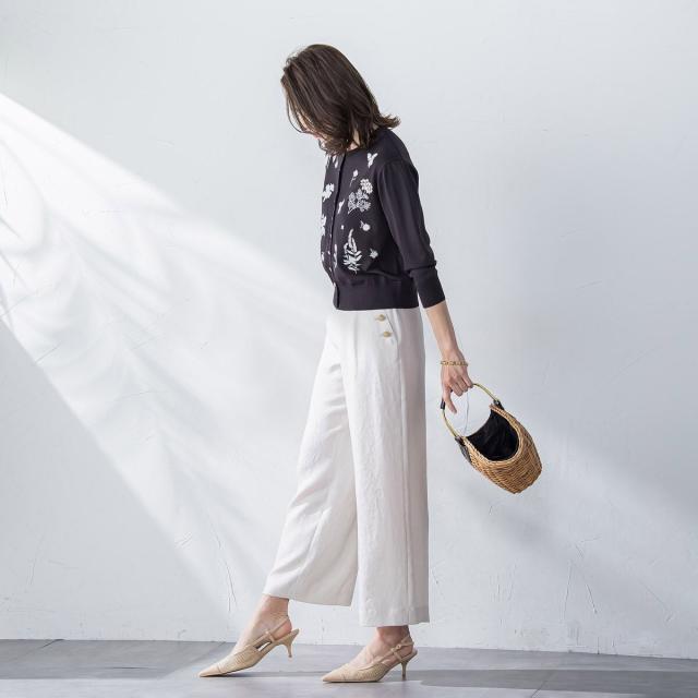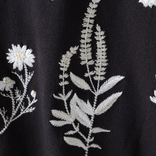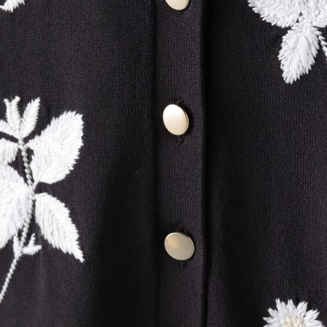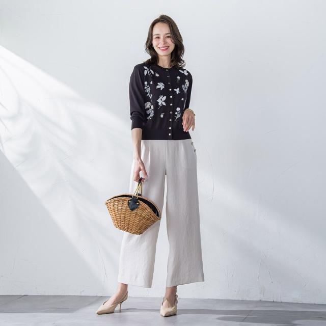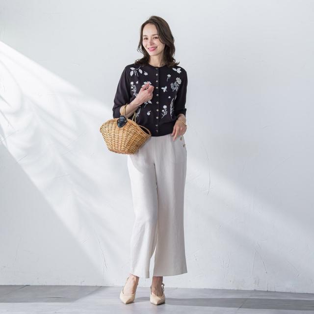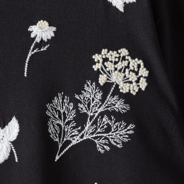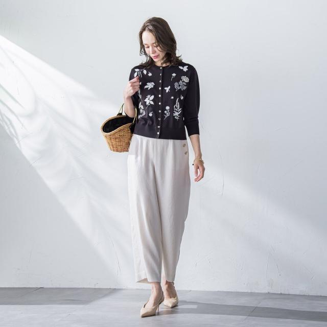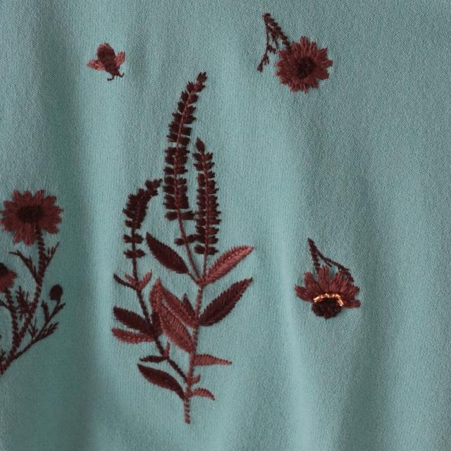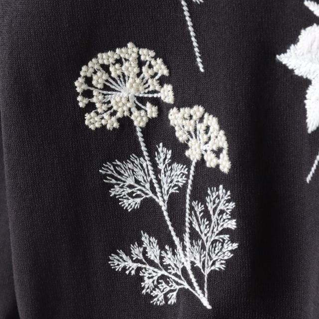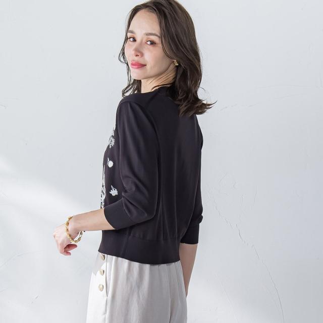 ハーブをテーマにしたボタニカルモチーフの刺繍がポイントのクルーネックカーディガン。