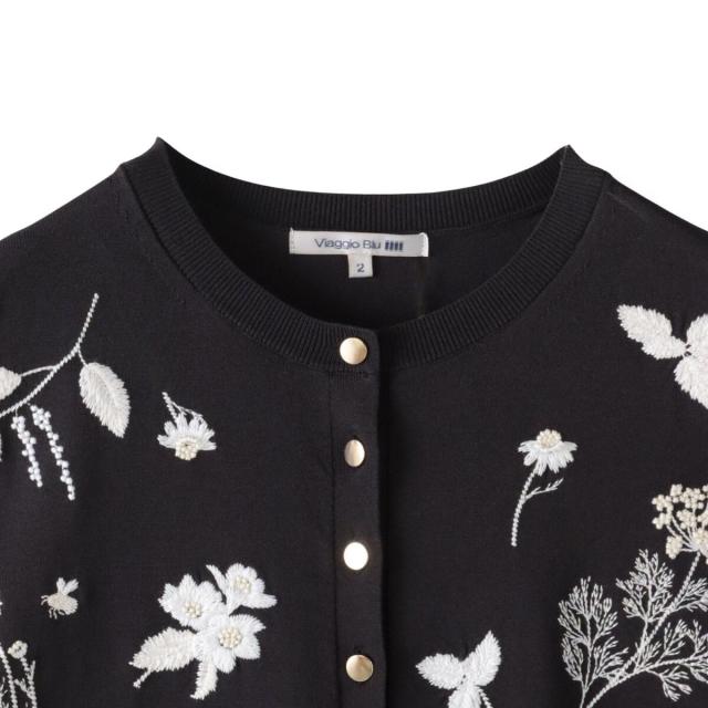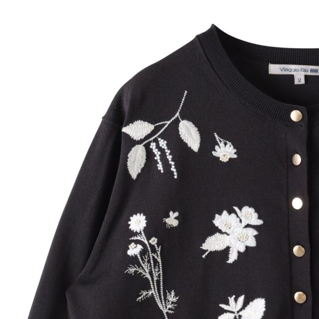ビアッジョブルー(Viaggio blu)/【新色追加】ハーブ刺繍カーディガン≪手洗い可能≫
