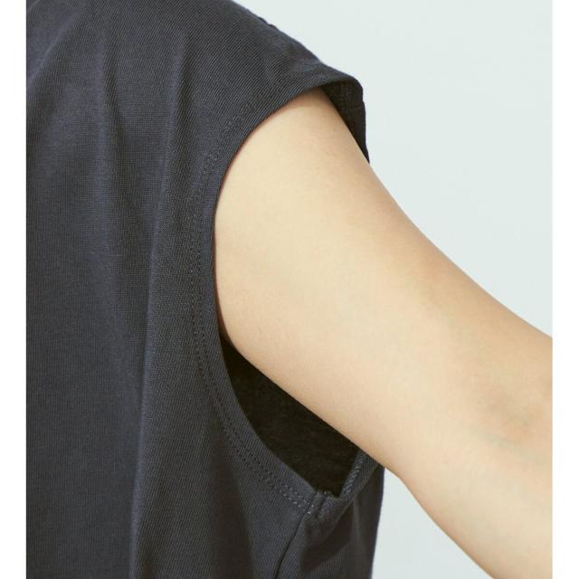 リサイクル天竺素材を使用し、環境にも配慮。滑らかな肌触りで、暑い日でも快適に過ごせます。透けにくい素材なので、インナーを気にせず着用できます。