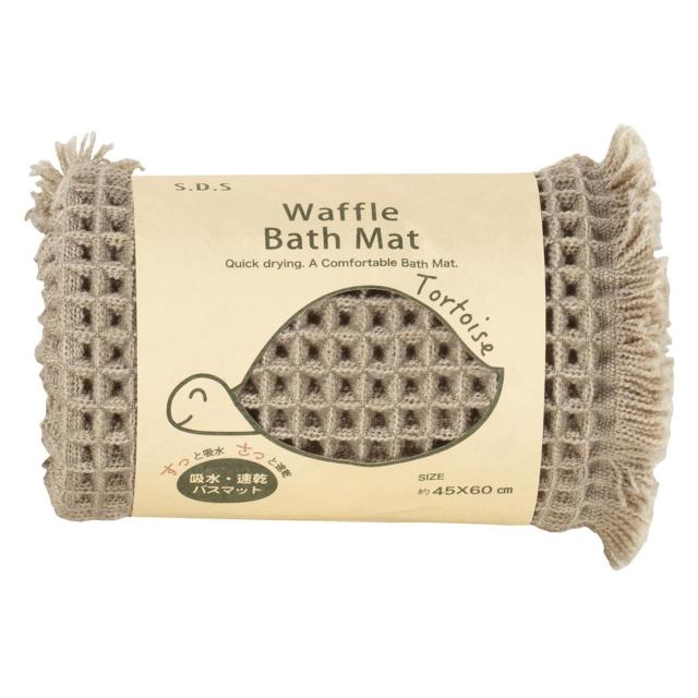 【毎日のお風呂上がりに大活躍】体から流れる水滴を吸水!「SDS バスマット トータス2 45x60cm」。【すっと吸水して、さっと速乾!】吸水・速乾性に優れやポリエステル糸を、ワッフル生地に織り込んだバスマット♪【ふんわり快適な踏み心地も魅力】ワッフルのような見た目でナチュラル感のある仕上がり。弾力があり、足裏を優しく受け止める◎【万能で嬉しいリバーシブルタイプ】滑り止め加工を施していないので、表裏を気にせず使用可能。両面同じように使えて便利。【丸洗いできて清潔をキープ】汚れが気になったら、ネットに入れて洗濯機洗い。タオル地マットのように気軽に使える!(※)洗濯機の弱モードor手洗いモードで、他の衣類と分けて洗濯してください。一部のドラム式洗濯機では、洗濯や脱水ができない場合がございます。【自宅用にもギフトにもおすすめ】空間に馴染む温かみのあるカラー&使い勝手の良いサイズ。可愛らしい亀さんのパッケージ☆