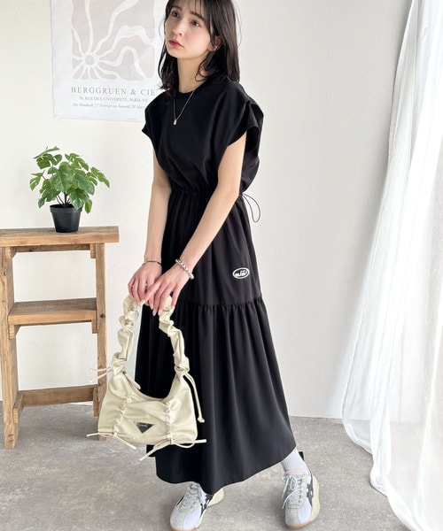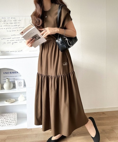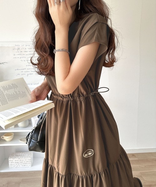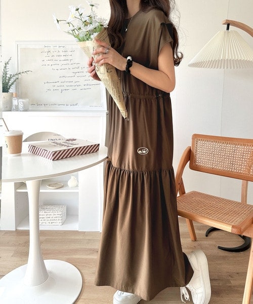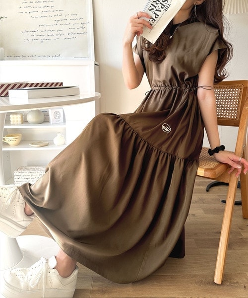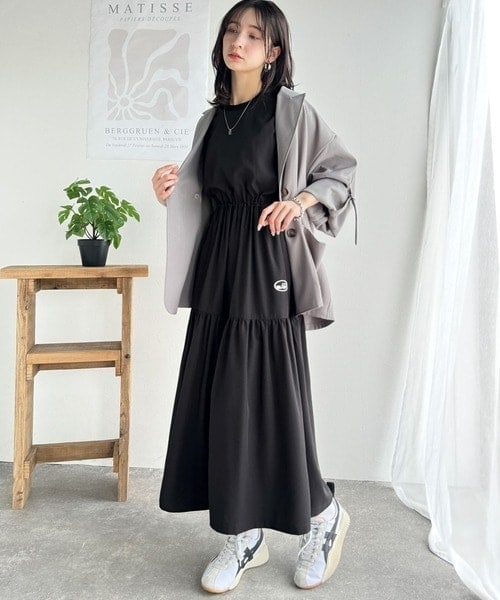 《JaVaジャバコラボ》ロゴ刺繍入りドロスト使いティアードロングワンピース