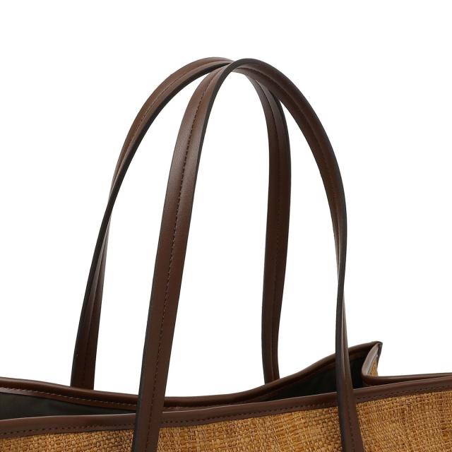■素材:表地: 植物繊維(ラフィア)、 裏地: ナイロン、 皮革部分: 合成皮革