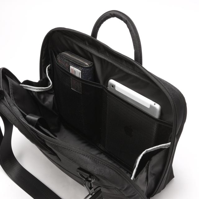 | ヘルメットバッグをイメージしたフェイスが特徴の2WAYビジネスバック。 ブリーフケース・ショルダーバッグとしてお使い頂けます。少し光沢感があり、 かちっとした印象で、ビジネスシーンにおすすめです。 バッグ内には機能性に富んだポケットを多く配置しており、背面にはキャリーバッグに固定する為のベルト付きで、荷物がまとめられ便利です。 |