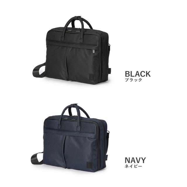 軽量で撥水性に優れたナイロン生地の裏面に PVC 加工を施すことにより耐久性、 防水性効果を向上させています。 サフィアーノレザーのような型押し加工をジャガード織で表現することで立体感を出し、ビジネスシーンにマッチする上品さも兼ね揃えています。