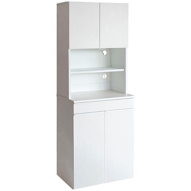 ◆電子レンジや食器、調味料が収納できるラック付きで、デッドスペースになりがちなゴミ箱上を有効活用できます。