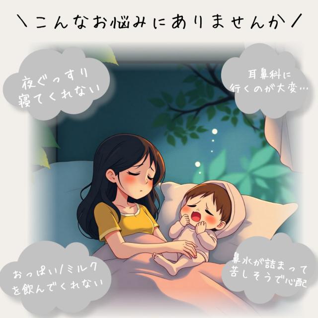 こんなお悩みのある方「夜ぐっすり寝てくれない」「鼻水が詰まって苦しそう」など
