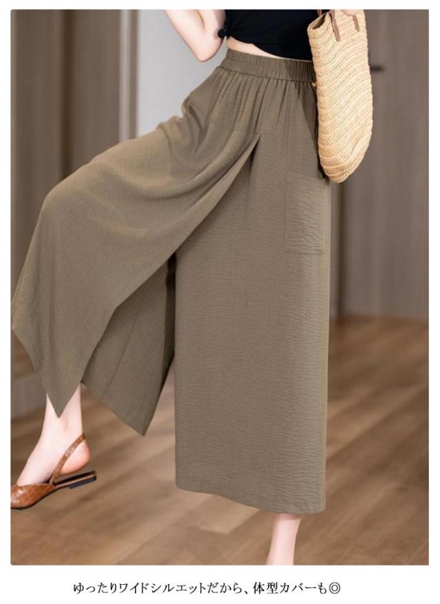 | 接触冷感 8分丈 ガウチョパンツ スカートのようなズボンは着た瞬間、下半身のぜい肉を隠してやせて見えるんです、優雅で便利でズボンよりルージュして楽です! 快適で涼しくい冷感生地、通気性が良く、全然ムレない、夏を涼しく快適に過ごしましょう。 ゆったりワイドシルエットだから、体型カバーも◎ カジュアルなTシャツやきれいめブラウスなどどんなトップスとも合い、リラックスシーンからちょっとしたお出かけまで幅広く大活躍♪ | |