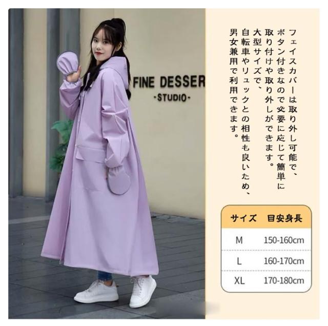 | 防水撥水加工 ランドセル対応 身長150-180cm ★通気性の設計が施されており、真夏や梅雨のような長時間の着用でもベタつきを感じることなく快適に過ごせます。リュックを背負ったままでも自転車を乗ることができます。 ★フェイスカバーは取り外し可能で、ボタン付きなので必要に応じて簡単に取り付けや取り外しができます。大型サイズで、自転車やリュックとの相性も良いため、男女兼用で利用できます。 ★ロング丈のデザインにより、全身をしっかりと覆い、足元まで雨から守ります。通勤通学や自転車運転、雨中作業などに最適です。特に梅雨や台風の時期には非常に役立ちます。 ★取り外し可能な透明バイザーが付属しています。飛沫防止や風雨対策に役立ちながらも、クリアな視界を確保することができます。風や斜め雨からも顔が濡れにくくなり、フードもサイズ調節可能です。視界を確保し、安全な運転が可能です。 ★通気性、自転車やリュックへの対応性、取り外し可能なフェイスカバーや透明バイザーの付属。梅雨や台風時などの悪天候下での使用において、快適さと安全性を提供します。 | |