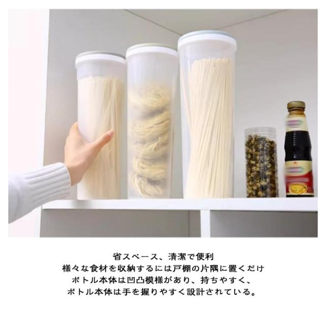 | 約1.7 L 【3個セット】 360°回転 食品レベルの材質 材質は安全で毒性がなく、 食品と直接接触することができる透明、軽量、落下に耐える 1.7Lの大容量 収納がより優れている 省スペース、清潔で便利 様々な食材を収納するには戸棚の片隅に置くだけ ボトル本体は凹凸模様があり、持ちやすく、ボトル本体は手を握りやすく設計されている。 回転可能な開口部設計(穴が二つあり) 約1人分 口径:約2cm 約2人分 口径:約2.6cm PP素材 底部の高さの増加置いて安定させる オリフィス設計取りやすい | |