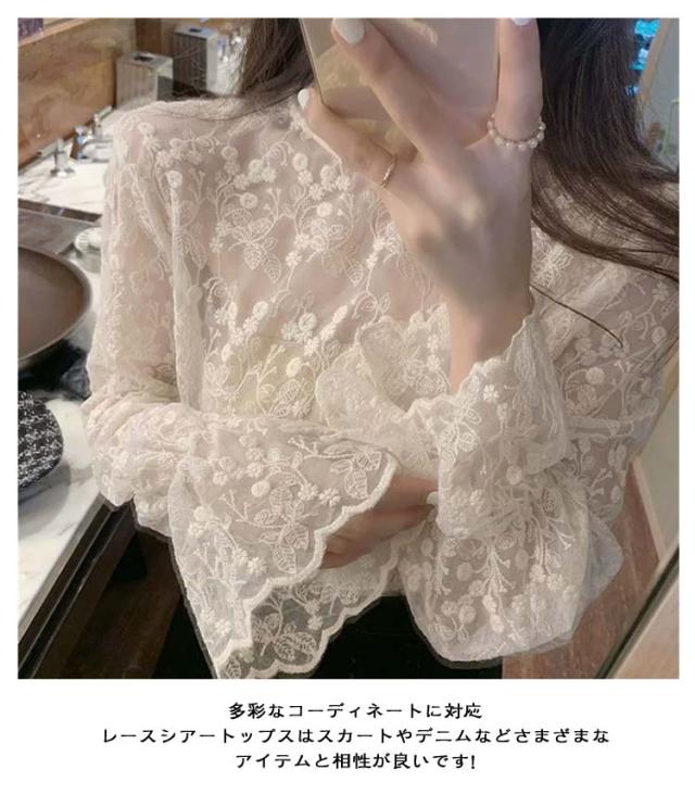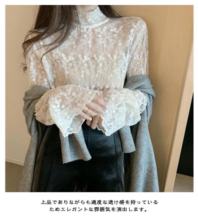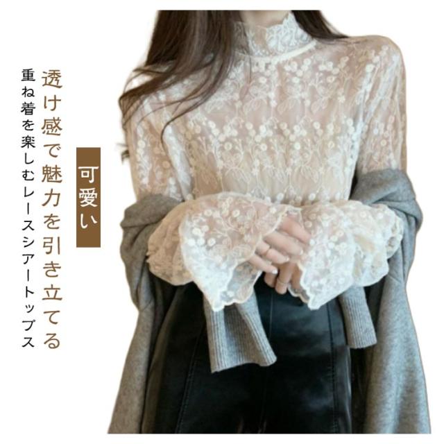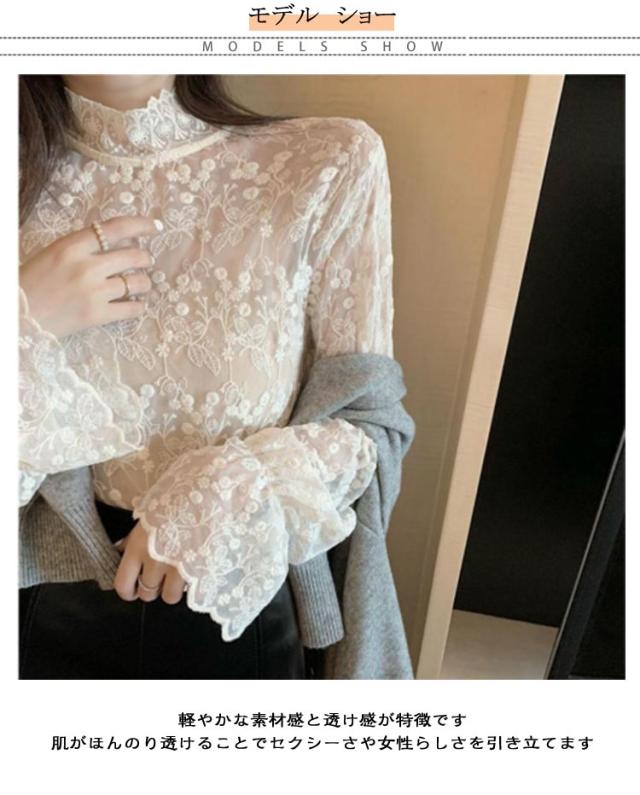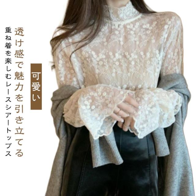 チュール シアー かわいい シアートップス ブラウス 可愛い 長袖 レーストップス 袖あり トップス 透け感 tシャツ インナー 韓国風 シースルー 大きいサイズ シアー ハイネック ブラウス 秋 冬 春 オフィス 通勤 20代 30代 40代 OL