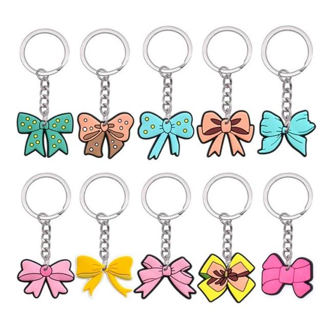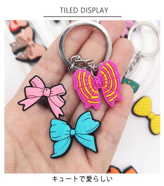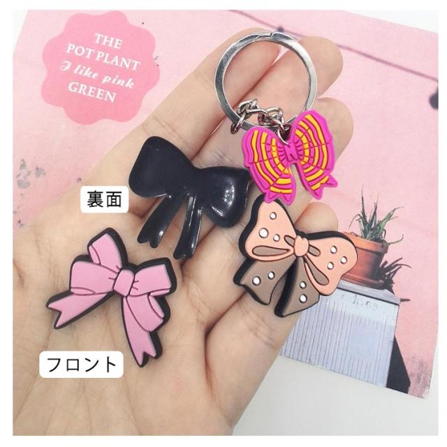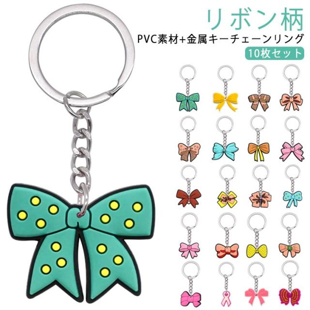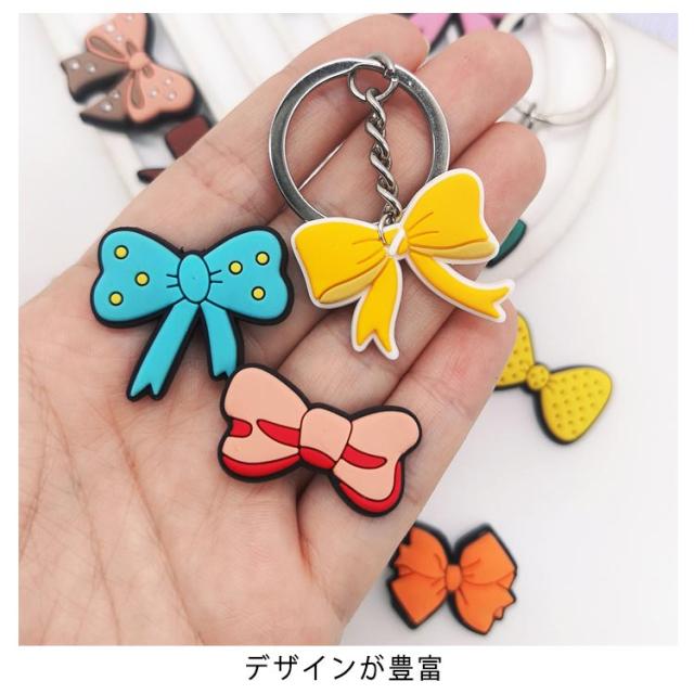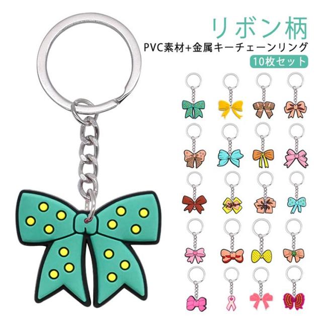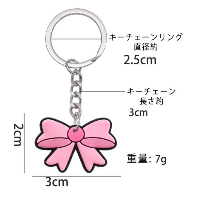 | PVC素材+金属キーチェーンリング/リボン柄 キュートで愛らしい デザインが豊富 手触りが心地よい | |