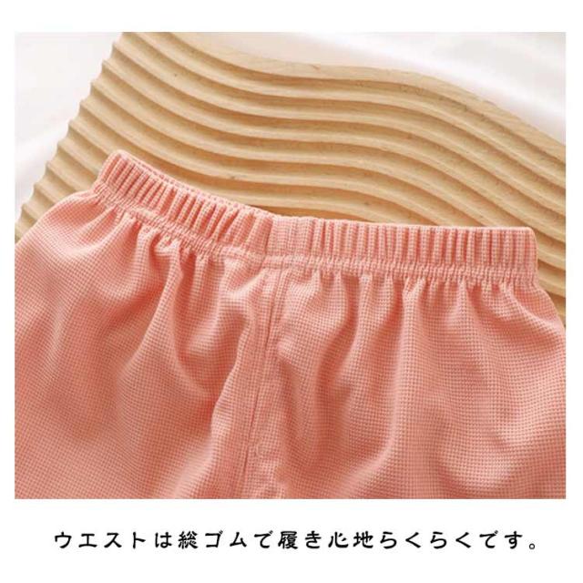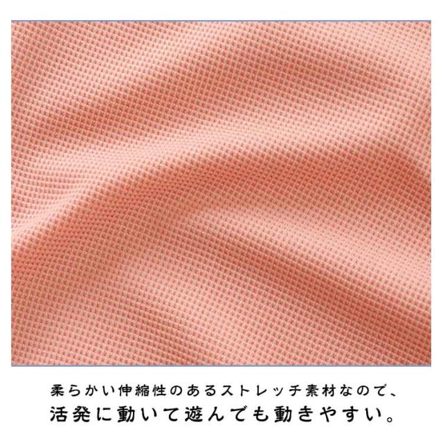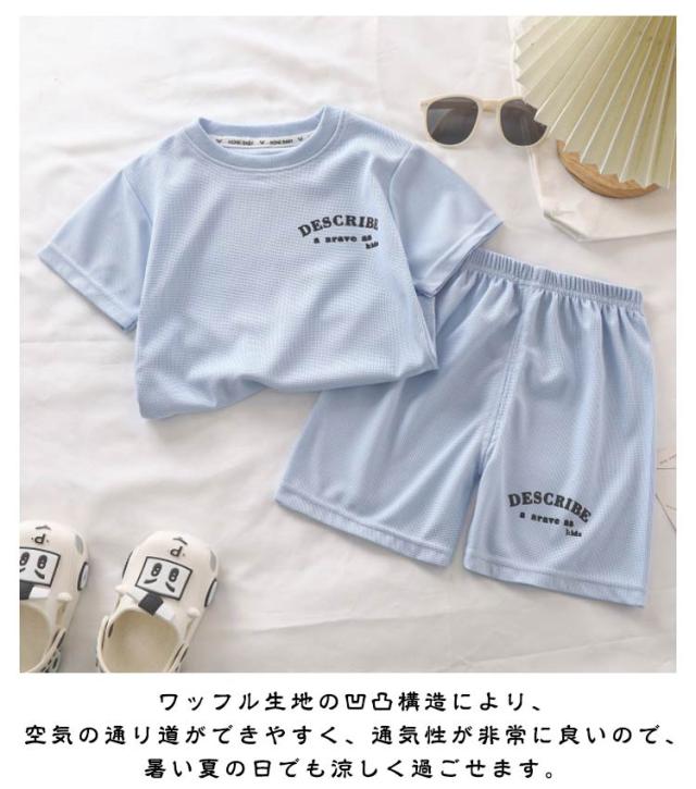| カジュアルな雰囲気と使いやすさで、着回し力の高い半袖tシャツ、ハーフパンツ上下セット。 ワッフル生地の凹凸構造により、空気の通り道ができやすく、通気性が非常に良いので、暑い夏の日でも涼しく過ごせます。 汗を吸い取ってくれるので、肌がべたつかず快適です。 柔らかい伸縮性のあるストレッチ素材なので、活発に動いて遊んでも動きやすい。 ウエストは総ゴムで履き心地らくらくです。 さらっとした着心地なので普段着からお出かけ、ルームウェア、スポーツまで、幅広く活躍してくれます。 | |