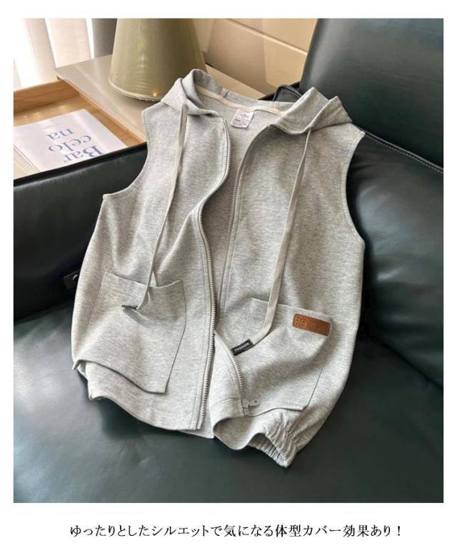ベスト レディース ノースリーブパーカー パーカーベスト フード付き ノースリーブ タンクトップ スウェット Tシャツ カジュアル 夏 薄手 重ね着 レイヤード ゆったり カジュアル アウター プルオーバー 無地 お出かけ 大きいサイズ ギフト 贈り物 春 秋 送料無料