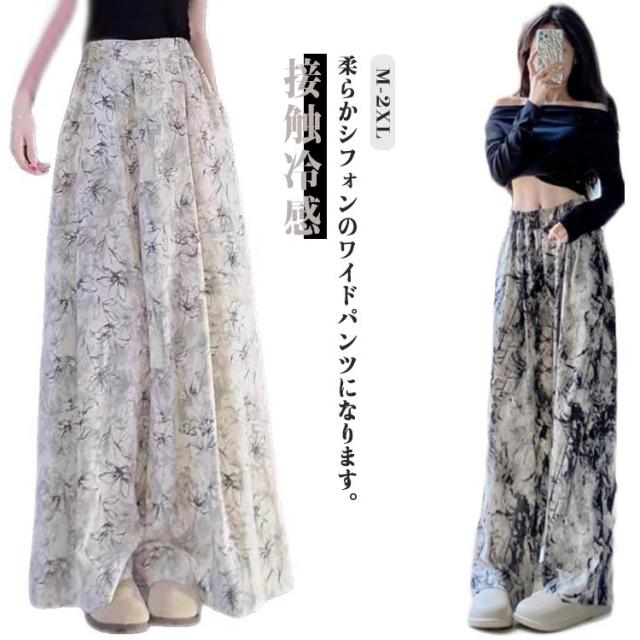 ロング丈 涼感 ズボン 送料無料 レディースガウチョ 普通丈 美脚 ガウチョパンツ ボトムス シフォン ひんやり 接触冷感 送料無料 ワイドパンツ パンツ 夏対策 UVカット 紫外線対策 日よけ ウエストゴム 楽ちん ゆったり