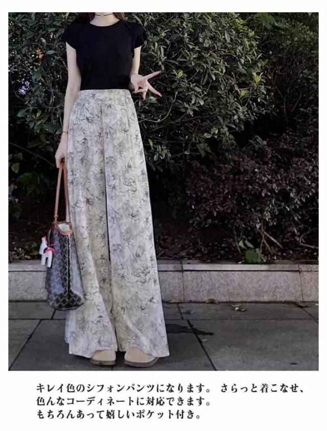 | ?柔らかシフォンのワイドパンツになります。 ?ウエストゴム仕様で安心感のある履き心地。サラっとした着心地で動きやすく、旅行・リモートワークなどの長時間の着用や、おうちでのリラックスコーデにもおすすめです。 ?柔らかい生地感とエアリーに揺れるす裾が、歩くたびに女性らしさを演出。セルフカットでき、自分に合わせたお好みの丈で着用して頂けます。 ?風にたなびく優雅なシルエットは街中でもリゾート感満載でステキな大人のデザインです ?キレイ色のシフォンパンツになります。 さらっと着こなせ、色んなコーディネートに対応できます。もちろんあって嬉しいポケット付き。 このゆったりシルエット、一目惚れ級の可愛さ! スタイルアップ効果を演出する腰位置高めのウエスト デイリーの着回しに活躍 | |
