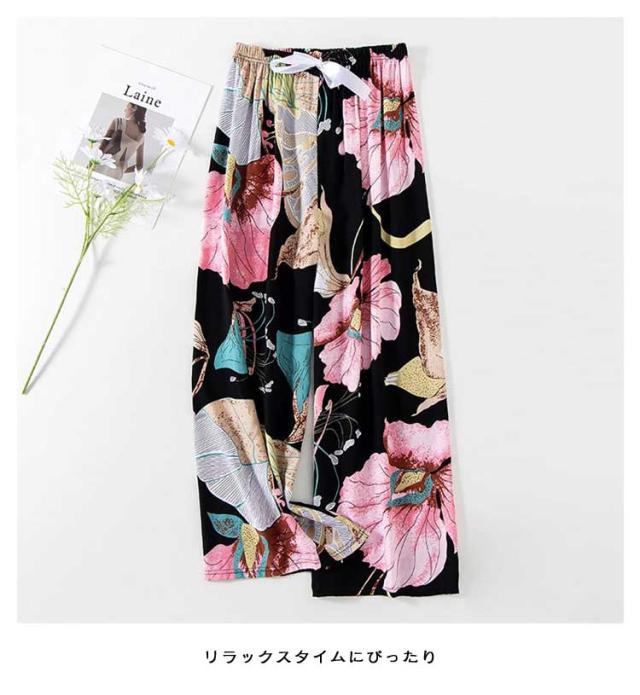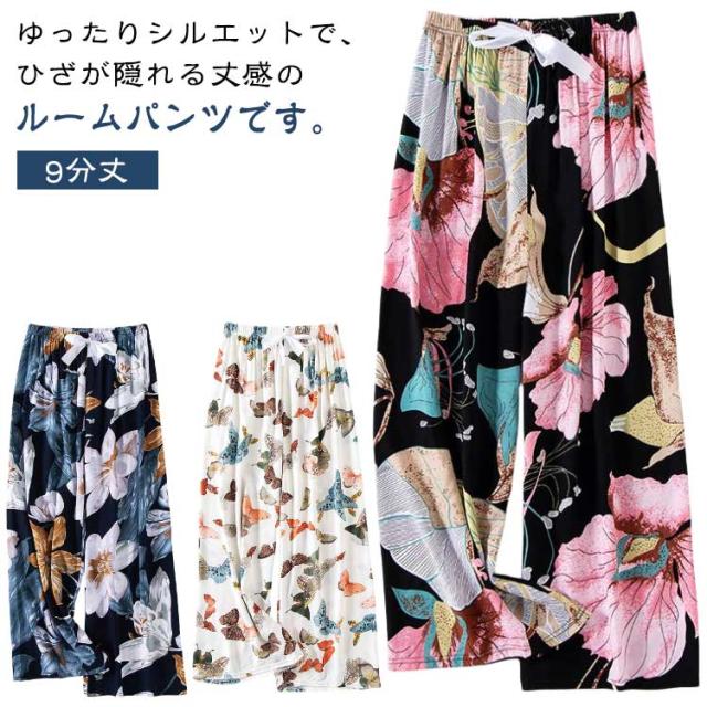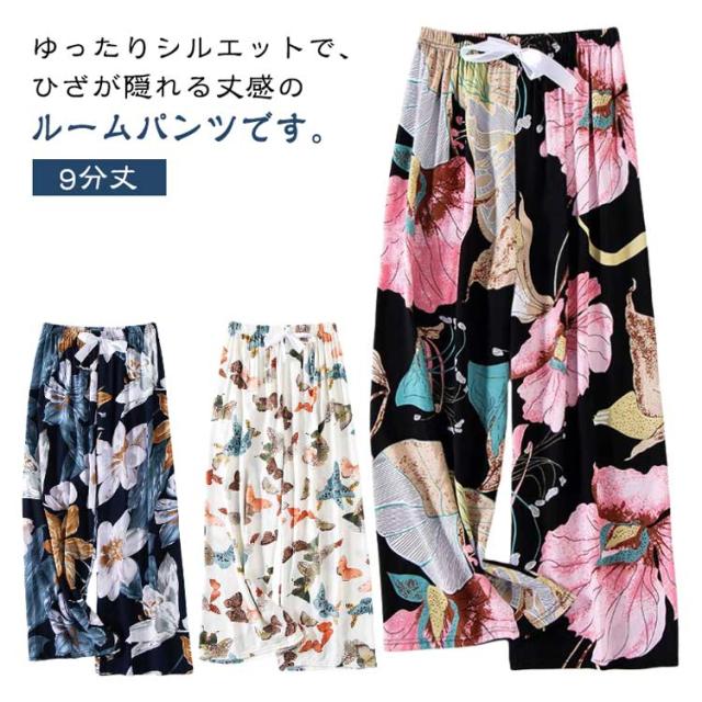 9分丈 サラテロパンツ 涼しい 9分丈 ゆったり ステテコ ルームパンツ 夏パンツ 薄手 ワイドパンツ 九分丈 レディース リラックスパンツ 総柄 部屋着 おしゃれ かわいい 花柄 婦人 パジャマ ロングパンツ 秋 春 夏