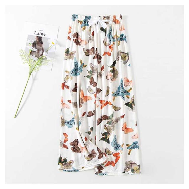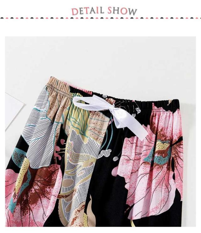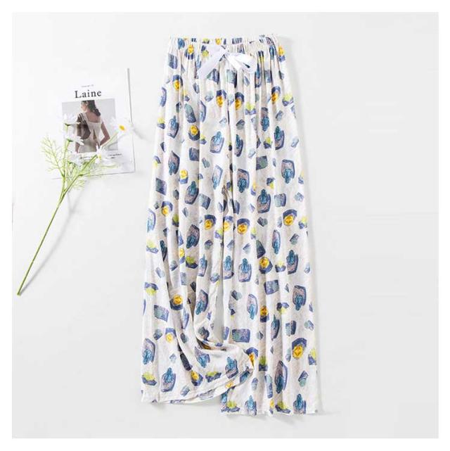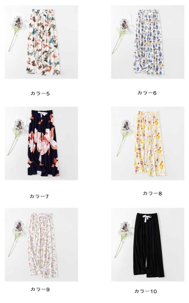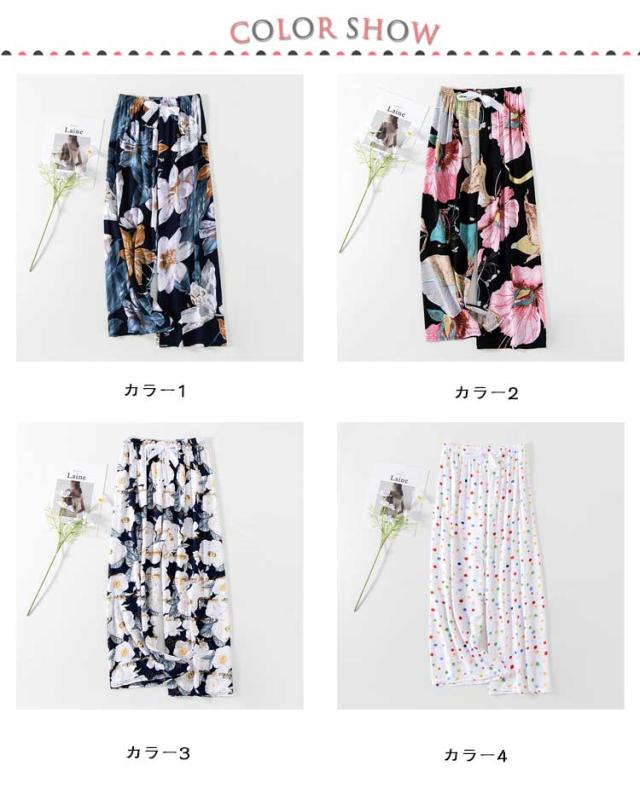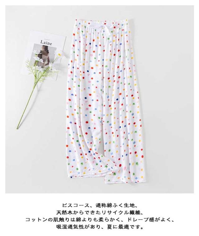 | ゆったりシルエットで、ひざが隠れる丈感のルームパンツです。 春秋はもちろん、夏用のパジャマとしても活躍してくれます。 リラックスタイムにぴったり♪ 通気性がよく涼しい。女性らしいカラフルなカラーと柄がオシャレ。 ビスコース、通称綿ふく生地、天然木からできたリサイクル繊維、コットンの肌触りは綿よりも柔らかく、ドレープ感がよく、吸湿通気性があり、夏に最適です。 | |