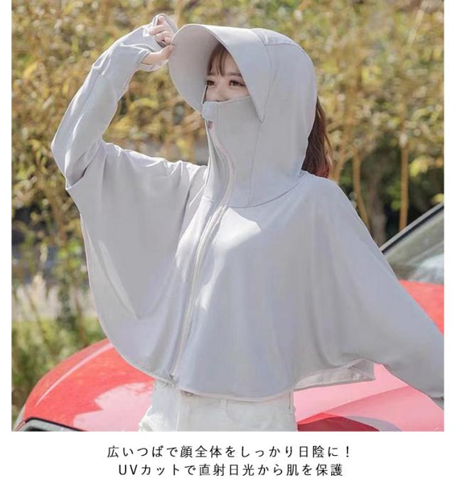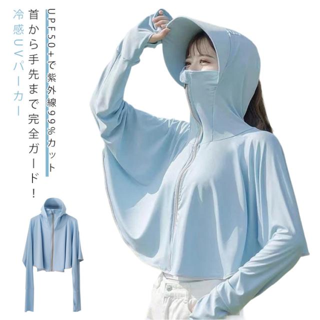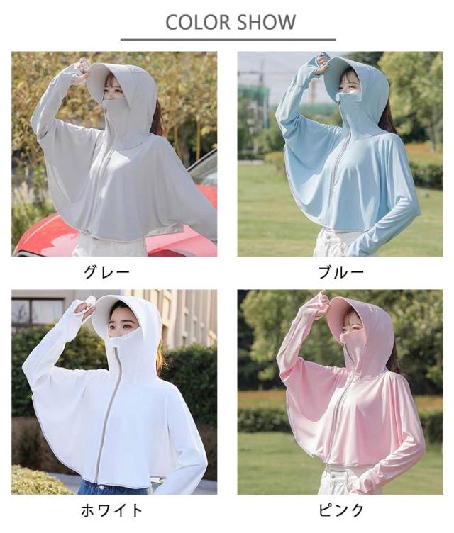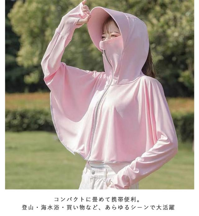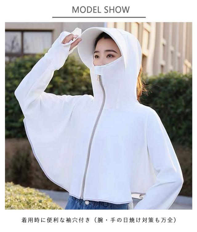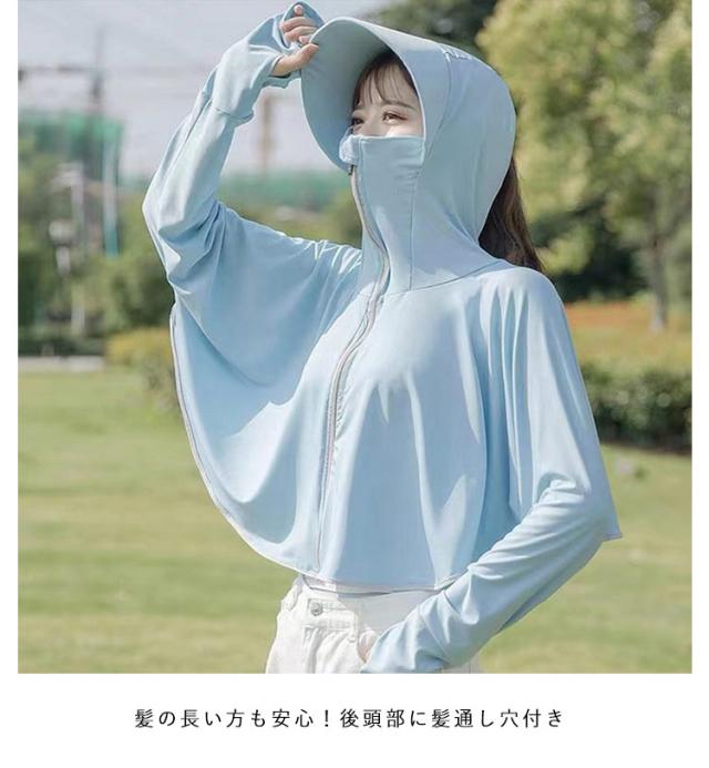 UVカット パーカー アームカバー レディース 夏 UPF50+ パーカー 冷感 日焼け止め アウトドア 紫外線対策 袖穴付き アイスシルク 帽子付き 羽織りもの 接触冷感 髪の毛 穴あり 広いつば 旅行 スポーツ 自転車 通勤 登山 アウター