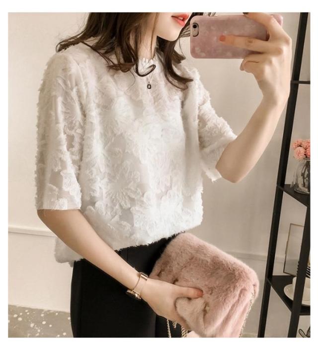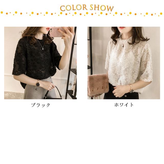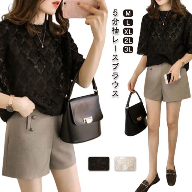 夏 春 レースT 五分袖 オフィスカジュアル セレモニー 花柄 シースルー プルオーバー レース レースT 薄手 涼しい 入学式 卒業式 結婚式 母