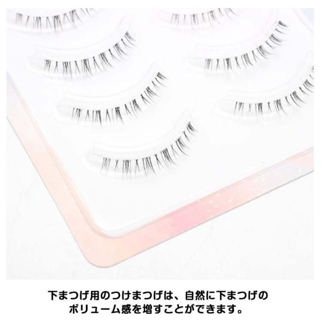 | 【10ペア入】 【下まつげ用のつけまつげ】 下まつげ用のつけまつげは、自然に下まつげのボリューム感を増すことができます。 凄く自然な装着感で持続性もアップ! 極細毛を採用しているので、つけるだけで目に立体感を出してくれます。 自然な毛束でふんわりとかわいい瞳に! 瞬時に立体感と奥行きのある目元を作り出し、目を一層魅力的で印象的に見せます。 | |