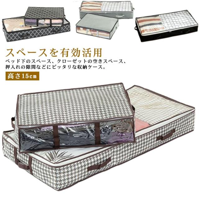 収納ボックス フタ付き 布 おしゃれ 折りたたみ 大容量 衣類収納 収納ケース 押し入れ収納 衣類収納 布団収納 ストレージボックス ベッド下 ソファー下 省スペース 引越し 透明窓付 持ち手付 隙間 収納 整理整頓 高さ15cm 送料無料