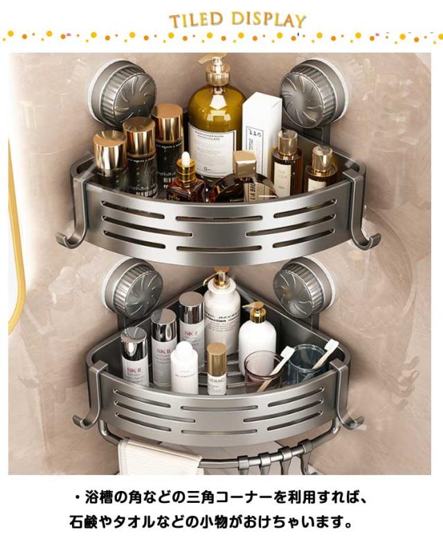2段 バスルーム 強力 コーナー 吸盤 吸盤式 ラック フック付き 浴室 収納 棚 吸盤コーナーラック お風呂 整理棚 ラック コーナーラック ウォールラック