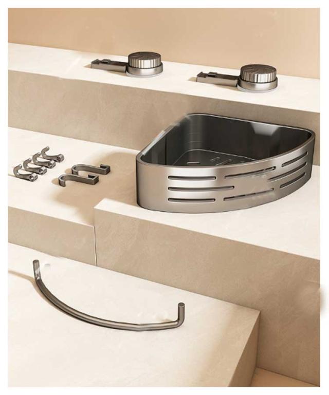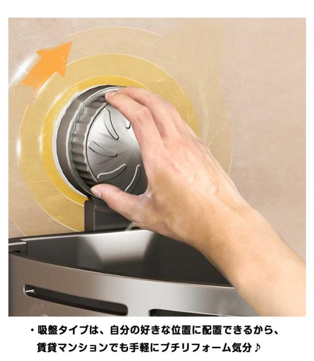 | ・浴室の壁面にピタッとくっつくコーナーラック ・浴槽の角などの三角コーナーを利用すれば、石鹸やタオルなどの小物がおけちゃいます。 ・吸盤タイプは、自分の好きな位置に配置できるから、賃貸マンションでも手軽にプチリフォーム気分♪ ・バスルームだけでなく、トイレやキッチンでも活躍します。 | |