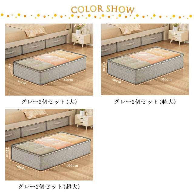 ベッド下収納ケース ベッド下用収納袋 ベッド下 ベッド下収納ケース 布団ケース ソフトボックス 布団収納袋 2個セット ファスナー ソファ下用 収納BOX 収納ボックス