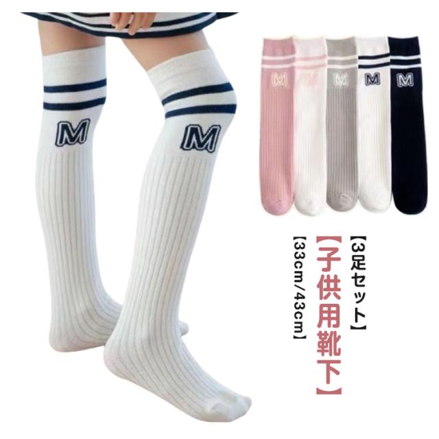 キッズ 女の子 ニーハイソックス 通学 春 子供服 秋冬 ダンス ジュニア ガールズ 33cm/43cm スクールソックス 小学生 【3足セット】ハイソックス おしゃれ 幼児 子ども 大人っぽい 【3足セット】ハイソックス コスプレ ソックス 男の子 こども