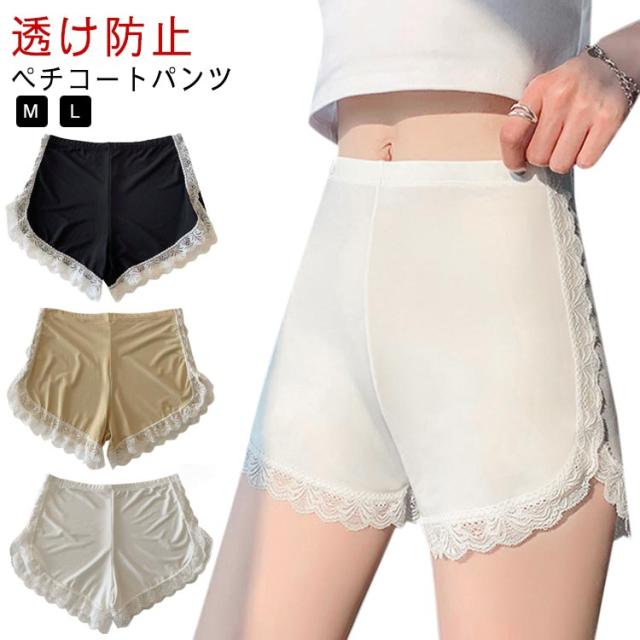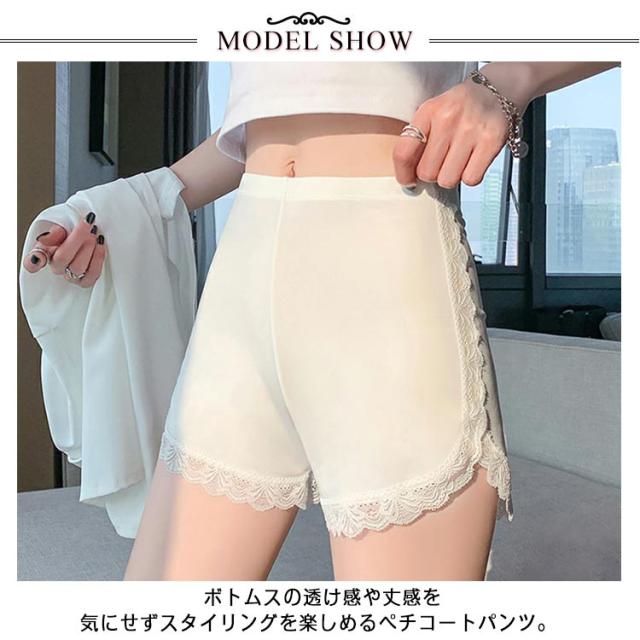 送料無料 ペチパンツ コットン レース付き ペチコート 透け防止 インナーパンツ スパッツショート丈 アンダーウェア 下着 ルームウェア 肌着 婦人用 無地 シンプル レディース おしゃれ 可愛い