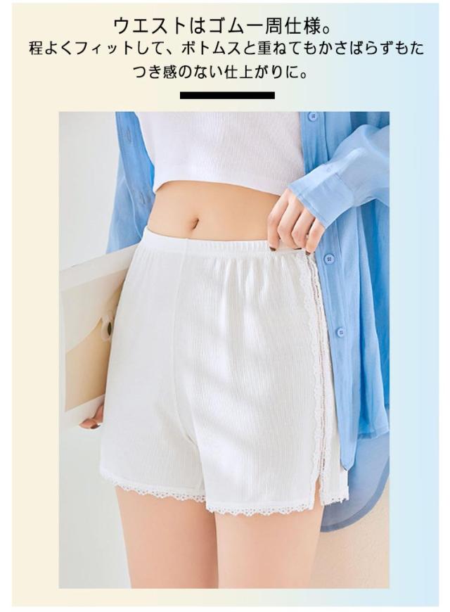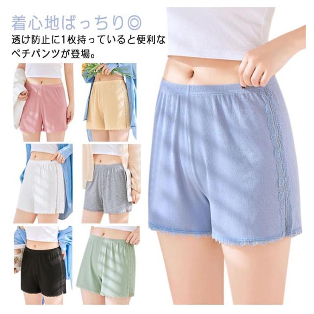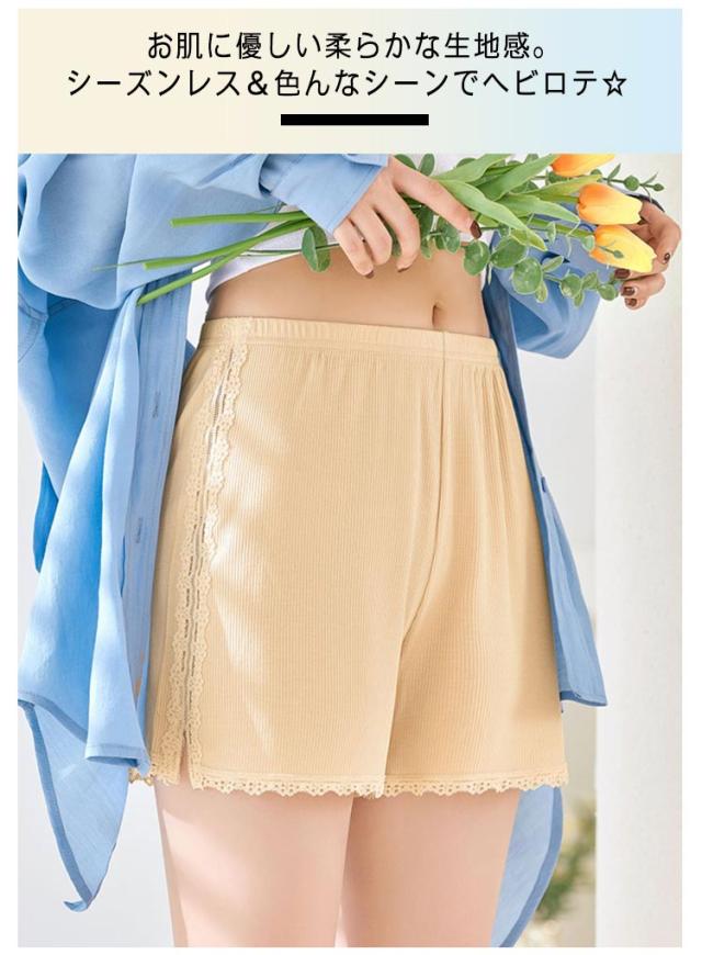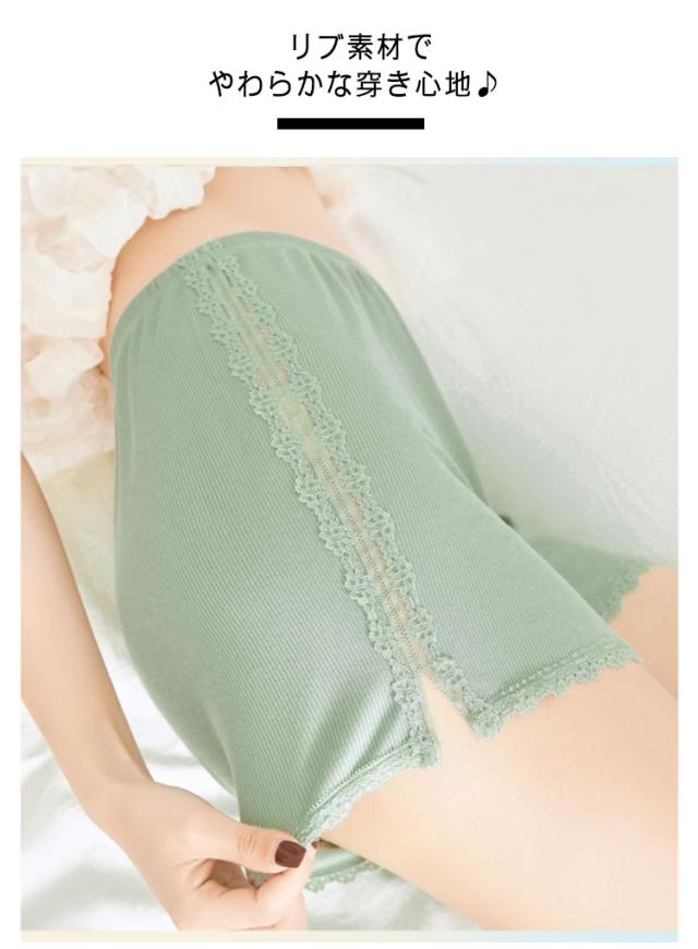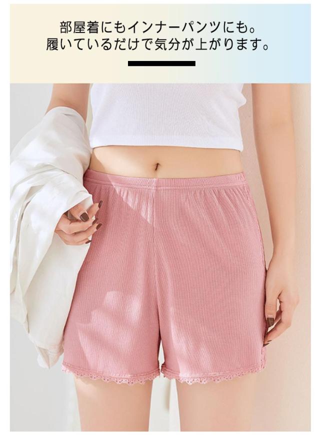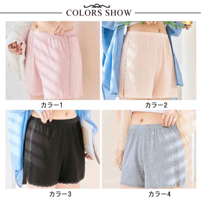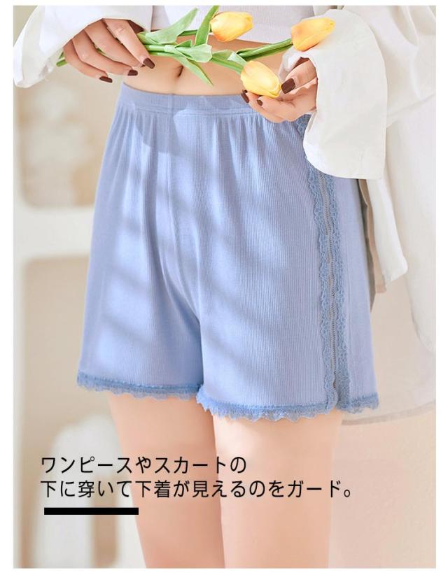 送料無料 ペチパンツ コットン 綿 リブ ペチコート 透け防止 インナーパンツ スパッツ ショートパンツ アンダーウェア 下着 ルームウェア 肌着 婦人用 無地 シンプル レース 大人可愛い おしゃれ 大きいサイズ