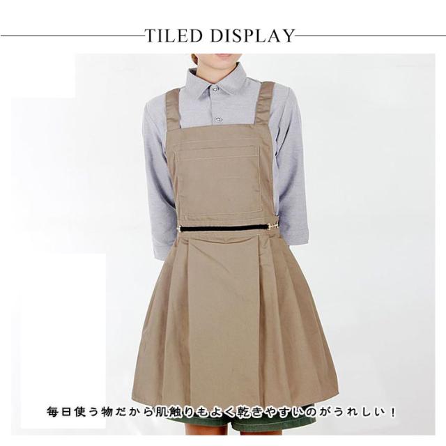| 動くたびにひらひら揺れる裾がかわいい、ワンピースみたいな防水エプロン 毎日使う物だから肌触りもよく乾きやすいのがうれしい! 肌に馴染むナチュラルカラーと長めの丈で、甘すぎず上品に着られます。 可愛らしい色味、おしゃれな見た目でナチュラルな着こなしにぴったりです。 料理、炊事洗濯などキッチンでの家事にはもちろん、サロン、カフェ、お料理教室やショップのユニフォームなど業務用としても、様々な用途でご使用いただけます。 ガーデニング、ワーキング、保育園、学校での作業の時などでもOK。 | |