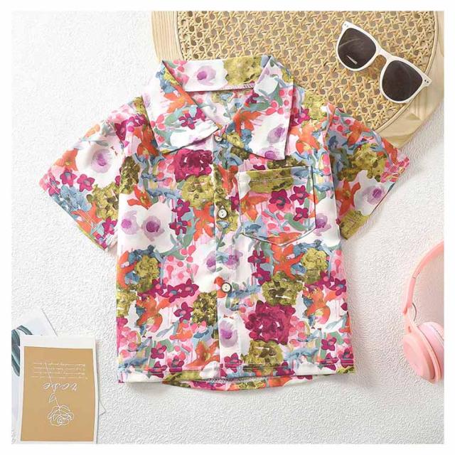子ども キッズ キッズ 半袖 女の子 男の子 夏服 子供服 シャツ トップス 半袖シャツ 薄手 こども 総柄シャツ リゾート 旅行 かわいい アロハシャツ アロハ柄 ジュニア 大きいサイズ 涼しい 可愛い ギフト プレゼント