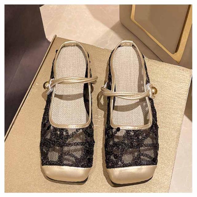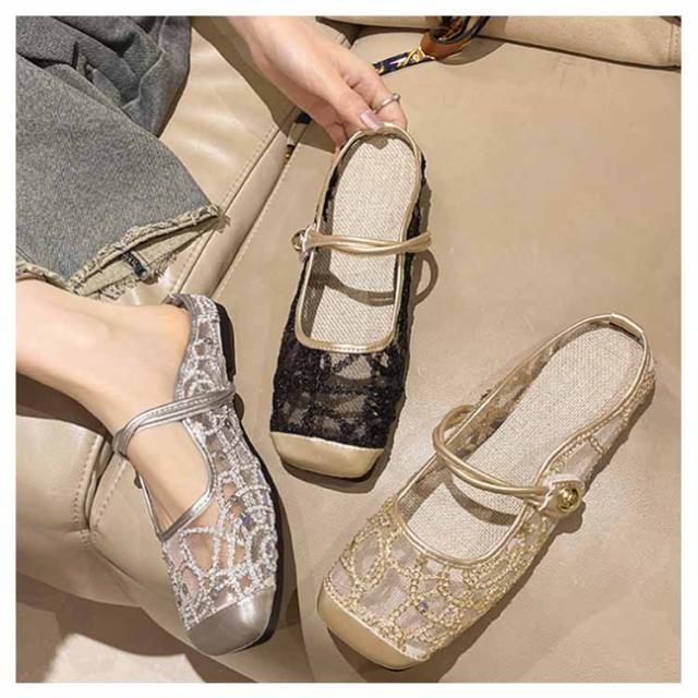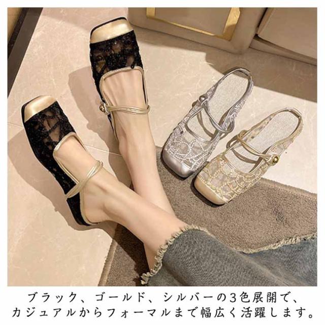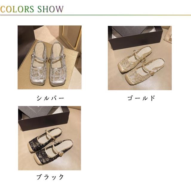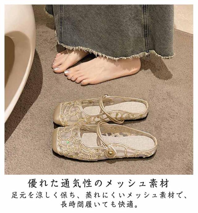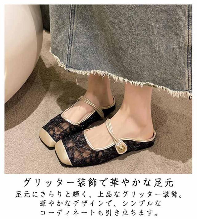 レディース グリッター フラットシューズ キラキラ 耐磨 防滑 サンダル サンダル シースルー パンプス ミュール ローヒール ぺたんこ チュール 疲れない カジュアル シンプル ゴールド シルバー