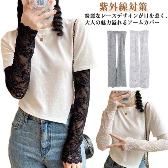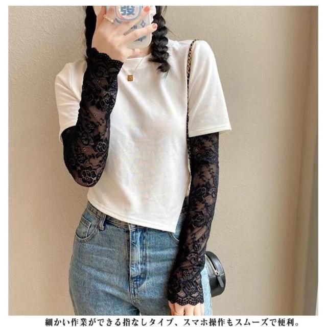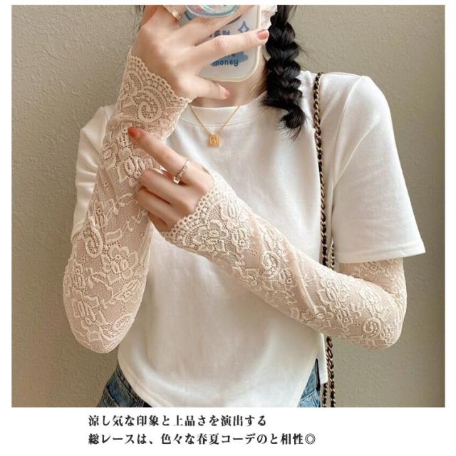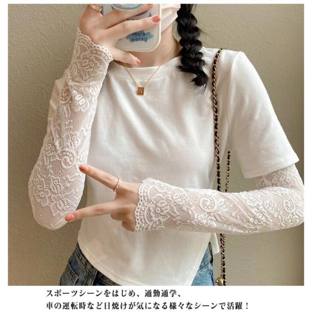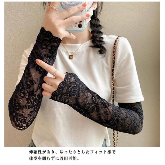送料無料 アームカバー 総レース 花柄 レディース ロング 腕カバー アームガード ゆったり 可愛い おしゃれ uv 遮光 紫外線対策 通気性 スポーツ 涼しい 日焼け対策 アウトドア 指なし ゴルフ 運転