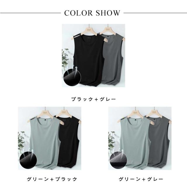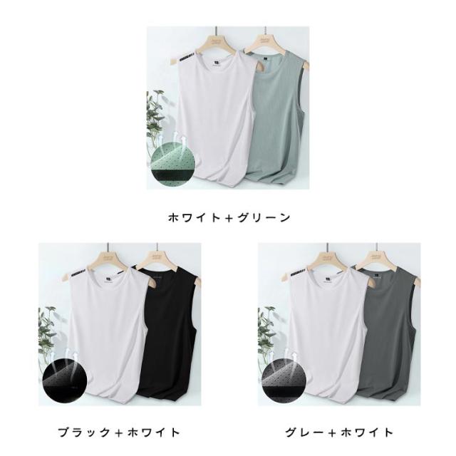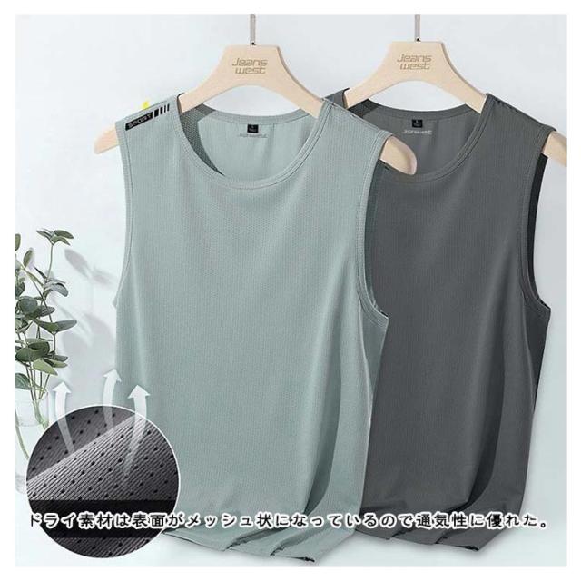 ノースリーブ タンクトップ メンズ 吸汗 速乾 シンプル メッシュ スポーツウエア インナー ストレッチ 冷感トップス 接触冷感 トップス 男性 メッシュtシャツ 袖なしtシャツ 大きいサイズ ドライ 伸縮性 ランニングシャツ 2枚セット ジム トレーニングウェア 部屋着