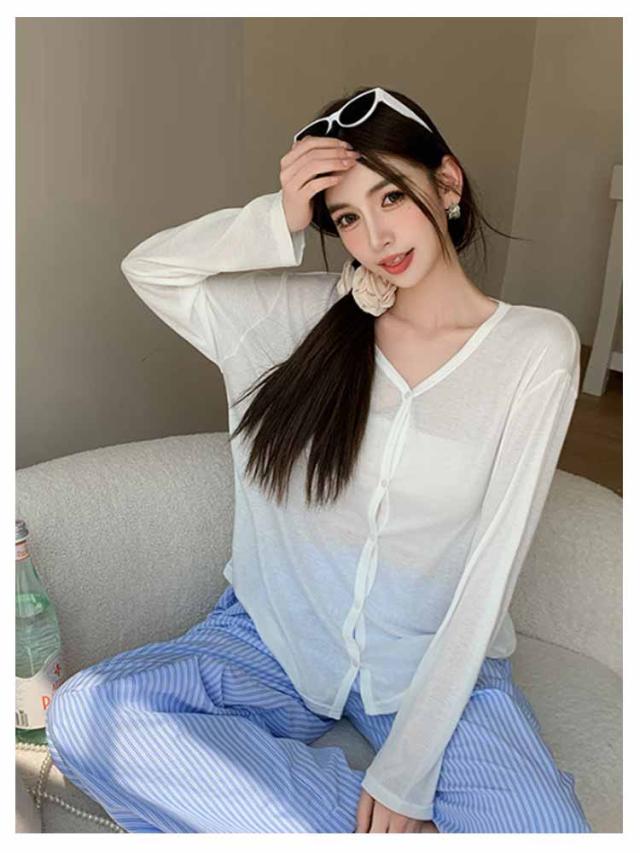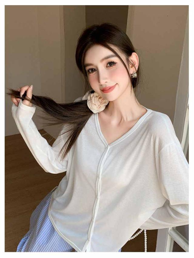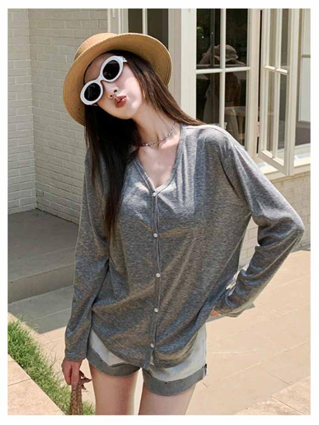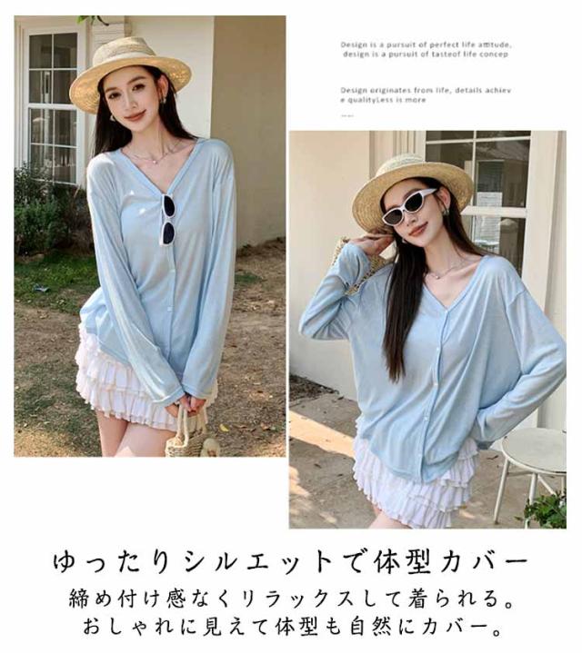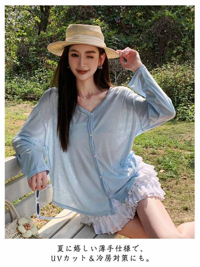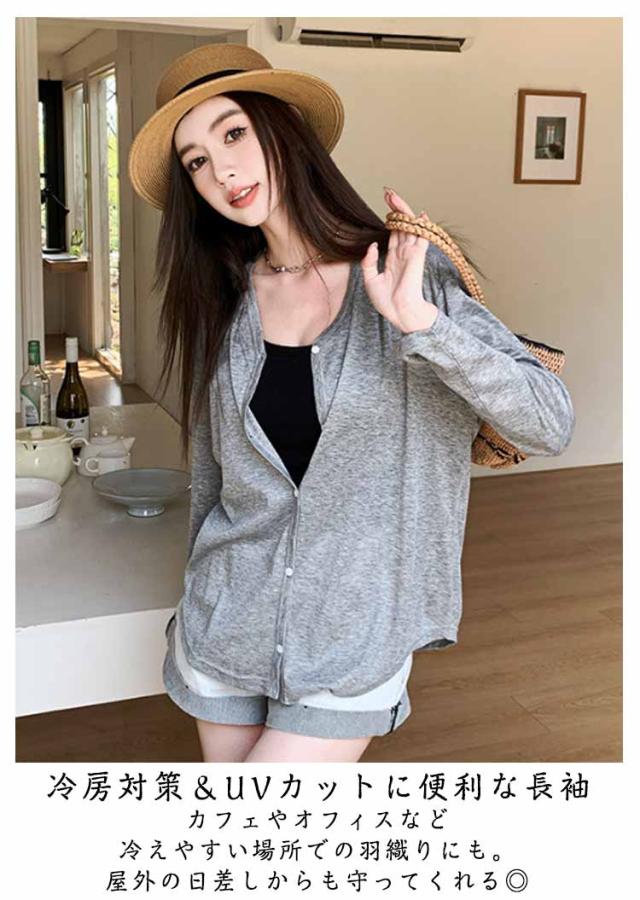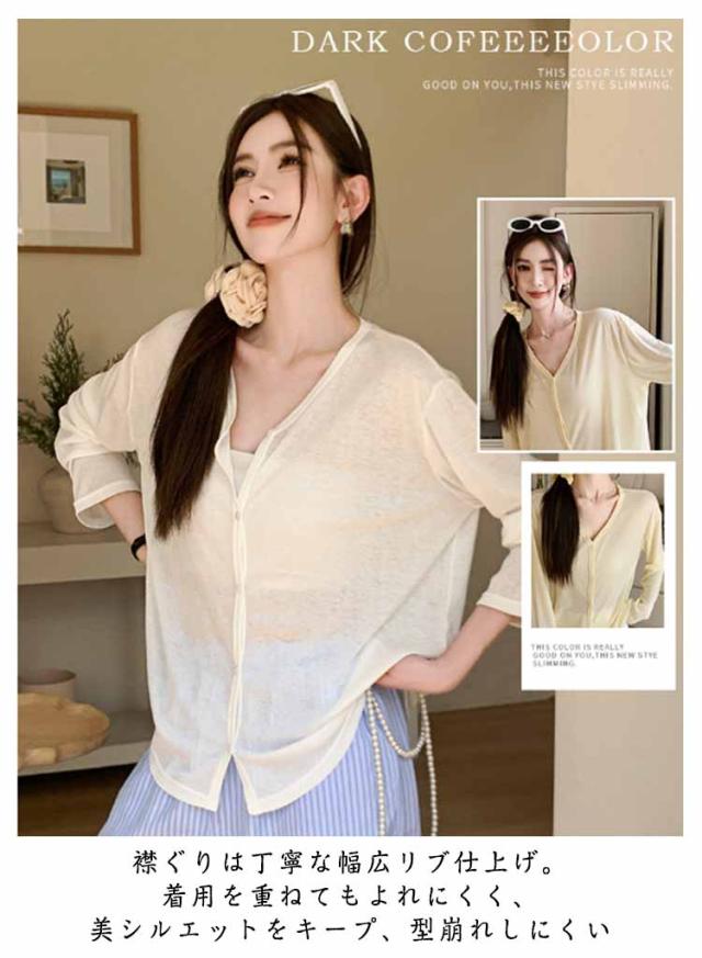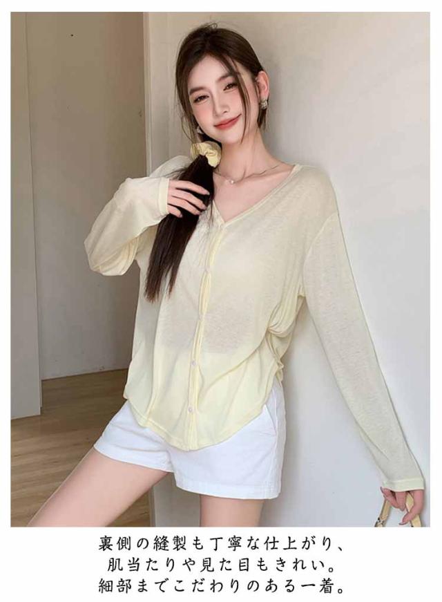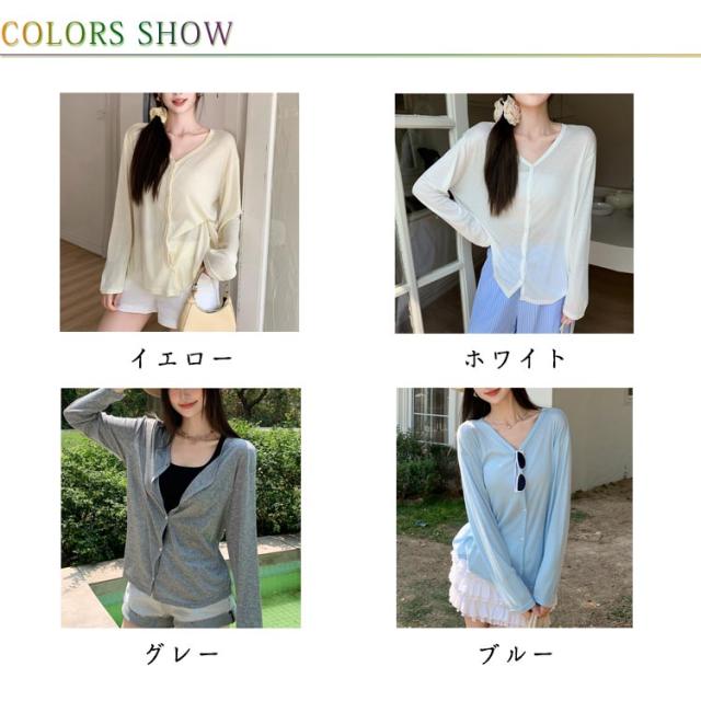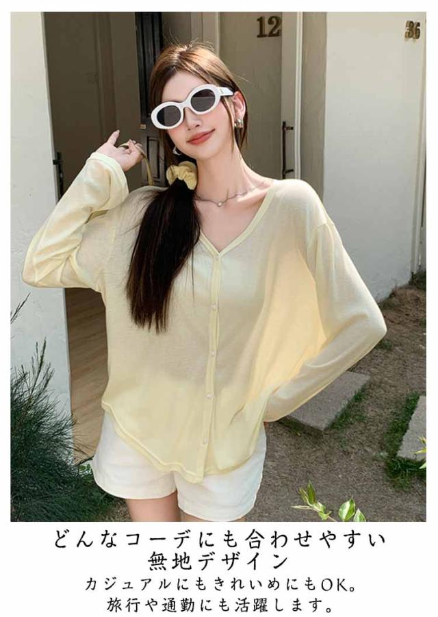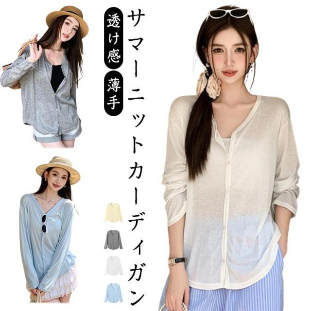 レディース シンプル 薄手 透け感 カーディガン サマーニット Vネック 長袖 シアーカーディガン おしゃれ 羽織り 冷房対策 UVカット 夏用アウター シアーカーディガン 夏カーデ ゆったり 体型カバー 通勤 通学 春