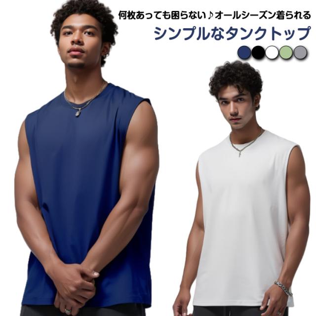 運動着 重ね着 おしゃれ メンズ 大きいサイズ 袖なしトップス 無地 筋トレ タンクトップ ノースリーブ タンクトップ カジュアル インナー クルーネック トレニンーグウエア スポーティ トップス 春夏 秋 涼しい 大人 男性