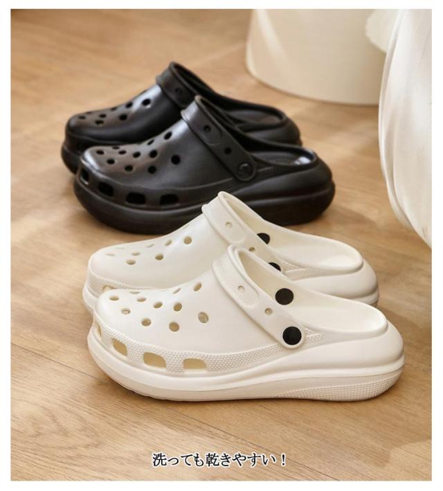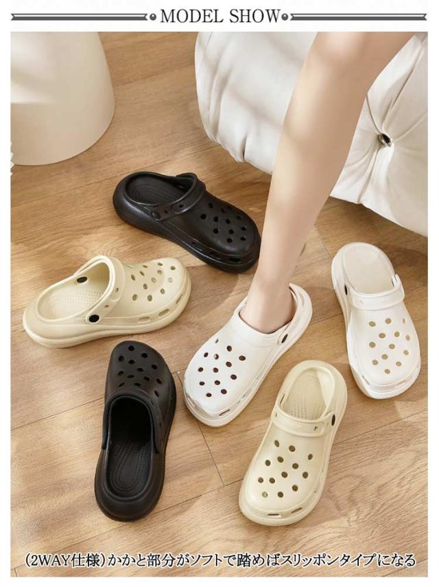 | 長時間歩行がさらにラクになる厚底EVAサンダル ・凹凸付きで滑りにくい ・パンチングでムレを軽減 ・インソールはより柔らかなEVA素材で衝撃を吸収 ・通気孔でムレを軽減 ・洗っても乾きやすい! ・(2WAY仕様)かかと部分がソフトで踏めばスリッポンタイプになる | |