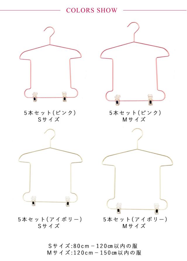 | トップスとボトムスを同時に収納できるセットアップハンガー。【子供用】【5本セット】 Tシャツをモチーフにしたような見た目にもキュートなデザインです。 ジャケットとボトムスを合わせてかけられるのでスーツなどのセットアップにオススメです。 またお気に入りのコーディネートで収納すれば忙しい朝に迷わずさっと選べるので便利です。 収納しやすいワイヤータイプで省スペースです。 | |