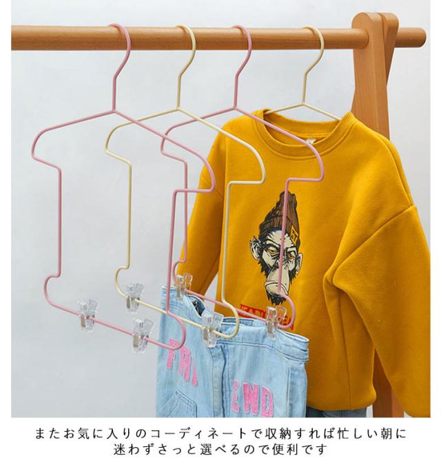 セットアップ用 上下セット 5本セット ジャケットハンガー 洋服ハンガー 子供用 パンツ 5本セット ハンガー ボトムス スカート ハンガー ジャケット ハンガー クリップ付き キッズ用 型崩れしない 収納ハンガー 衣類ハンガー