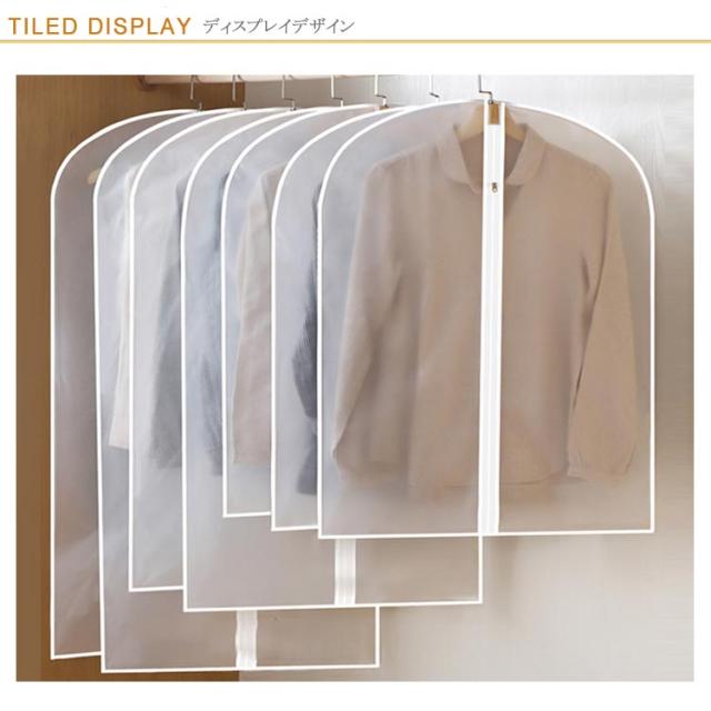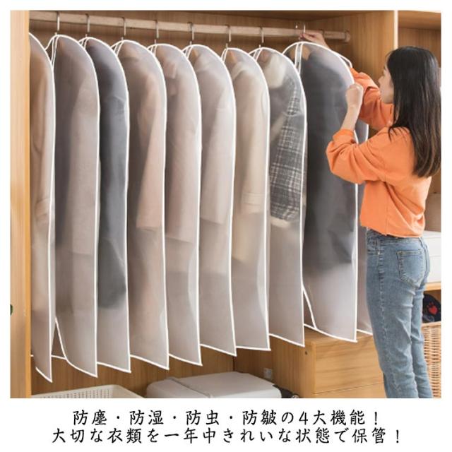 ダストカバー 5枚セット 洋服カバー 防塵 折りたたみ 防水 防虫 防湿 防皺 PEVA製ロング丈 半透明 ファスナー付き スーツカバー 衣類収納袋 衣類カバー 型崩れ防止 長期保管 洗える 繰り返す使用可能