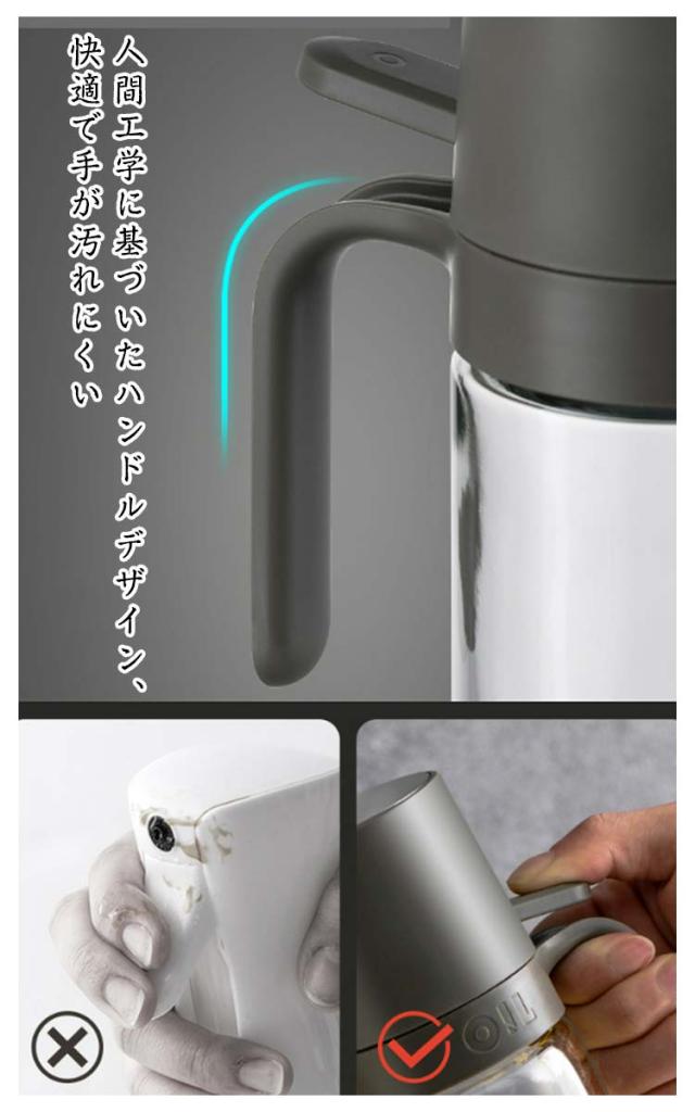 | 120℃耐熱ガラス!広口デザインと3D広角スプレーノズル 口径が大きく、油を入れやすい 微細な霧化で食材に均等に浸透 コンパクトサイズで収納スペースを取らない 洗いやすい構造でクリーニングが簡単 人間工学に基づいたハンドルデザイン、快適で手が汚れにくい ノズルが汚れにくく、定期的な洗浄が不要。 3D立体的な広角スプレーノズルで、微細な霧が瞬時に広範囲に広がり、調理効率が飛躍的に向上します。 傾斜式ストローにより、オイルを最後までスッキリ使い切れ、コストパフォーマンス抜群です。 | |