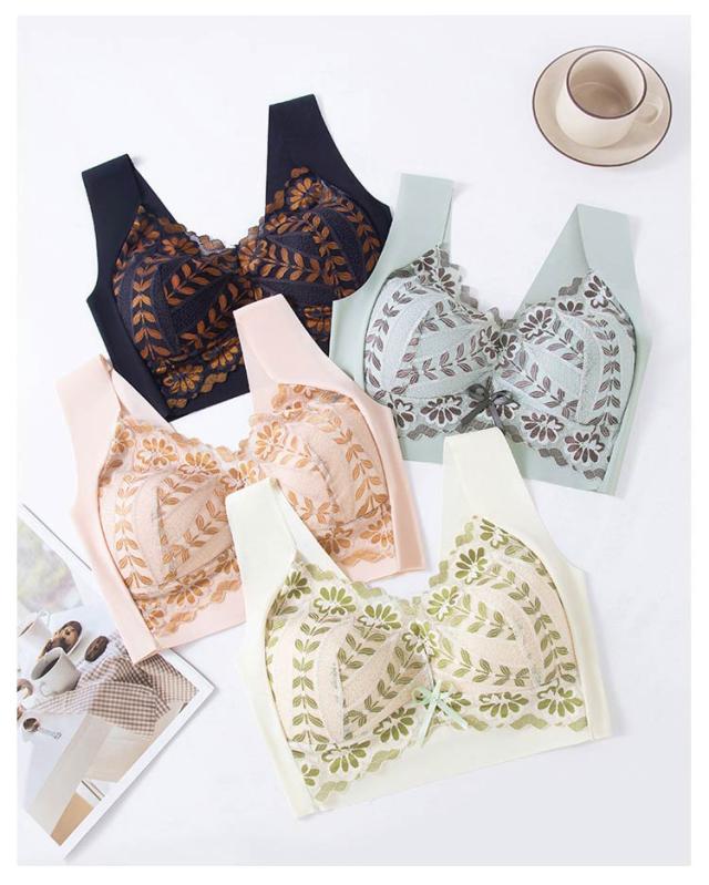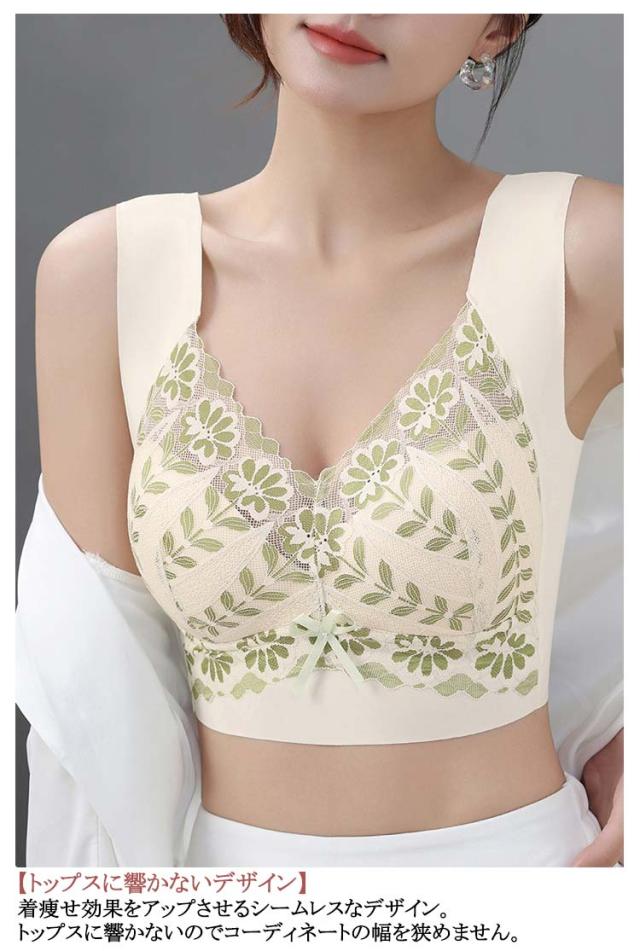 ブラ 大きな胸を小さく見せる はみ肉 レース 2枚入 胸を小さく見せるブラ 胸を小さく見せるブラ シームレス ハーフトップ レース ブラジャー ナイトブラ 大きいサイズ 無縫製 ノンワイヤー スッキリ ワイヤレス 小さく見せるブラジャ 脇高