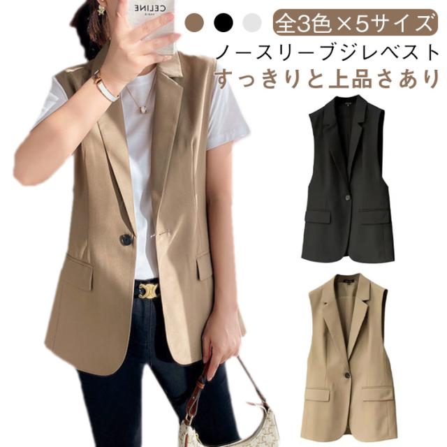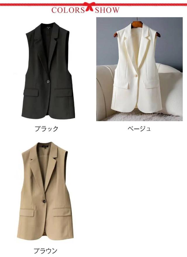 ジレ レディース フォーマル 春 夏 ロング テーラードベスト ベスト ロングベスト テーラード スーツベスト ノースリーブ シンプル 羽織り 前開き 無地 通勤 きれいめ キレイめ 20代 30代 40代 送料無料