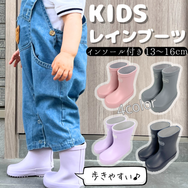 レインブーツ キッズ 長靴 雨靴 雨 防水 雨具 梅雨 歩きやすい 女の子 男の子 13cm 14cm 15cm 16cm 砂遊び 天然ゴム アウトドア 疲れにくい レインシューズ 靴 ピンク グレー ネイビー パープル プレゼント シンプル 赤ちゃん ベビー