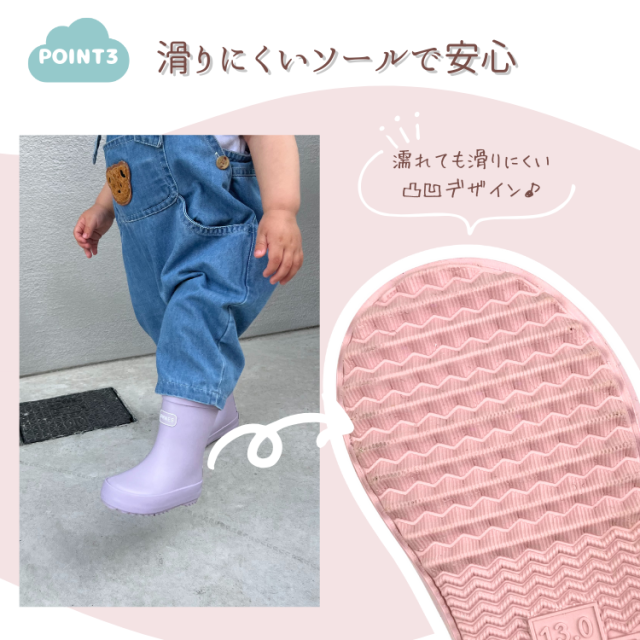 靴底の滑り止めなど、お子様の安全に配慮した設計になっています。